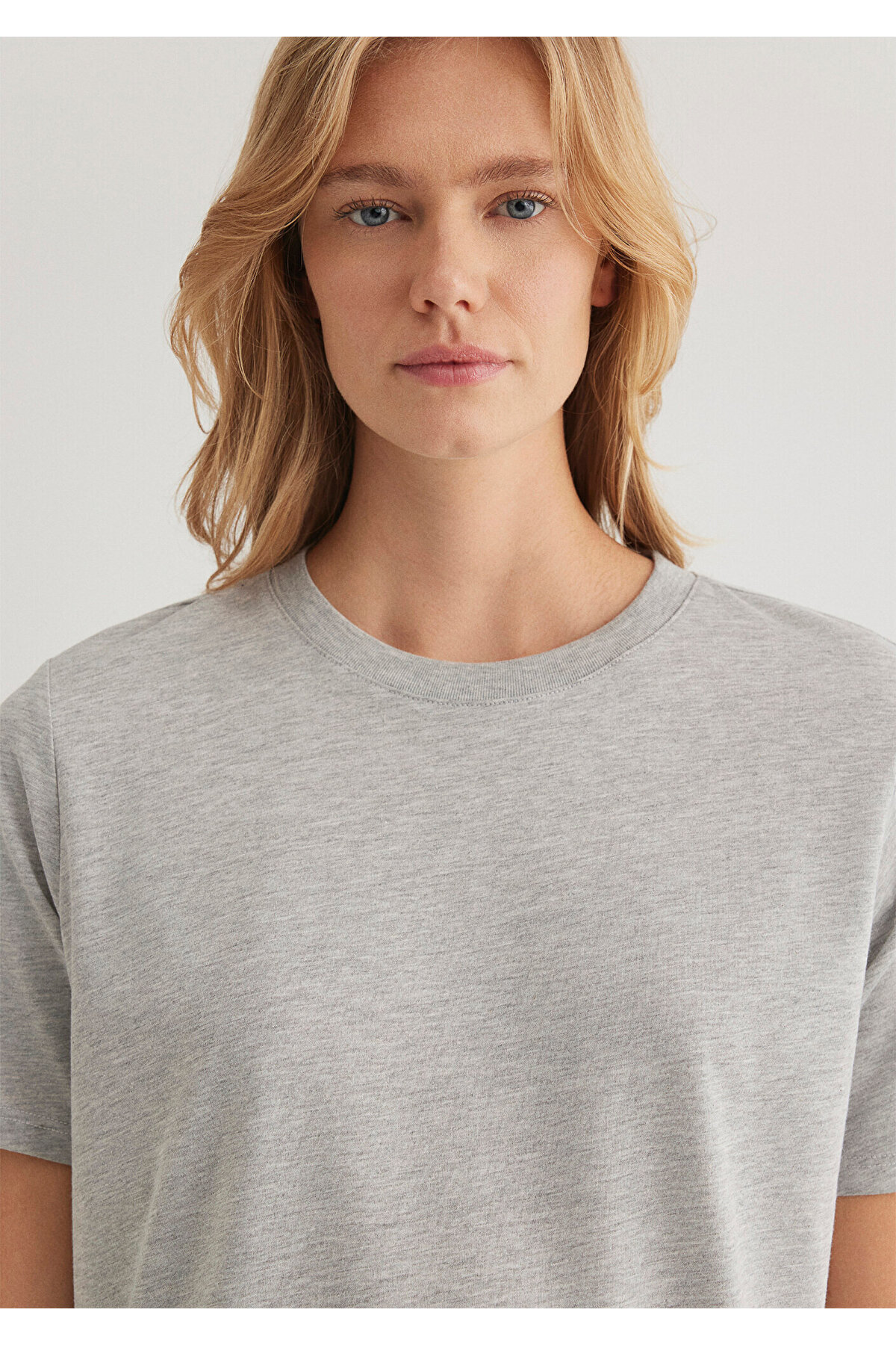 تیشرت زنانه یقه گرد خاکستری طرح ساده Mavi