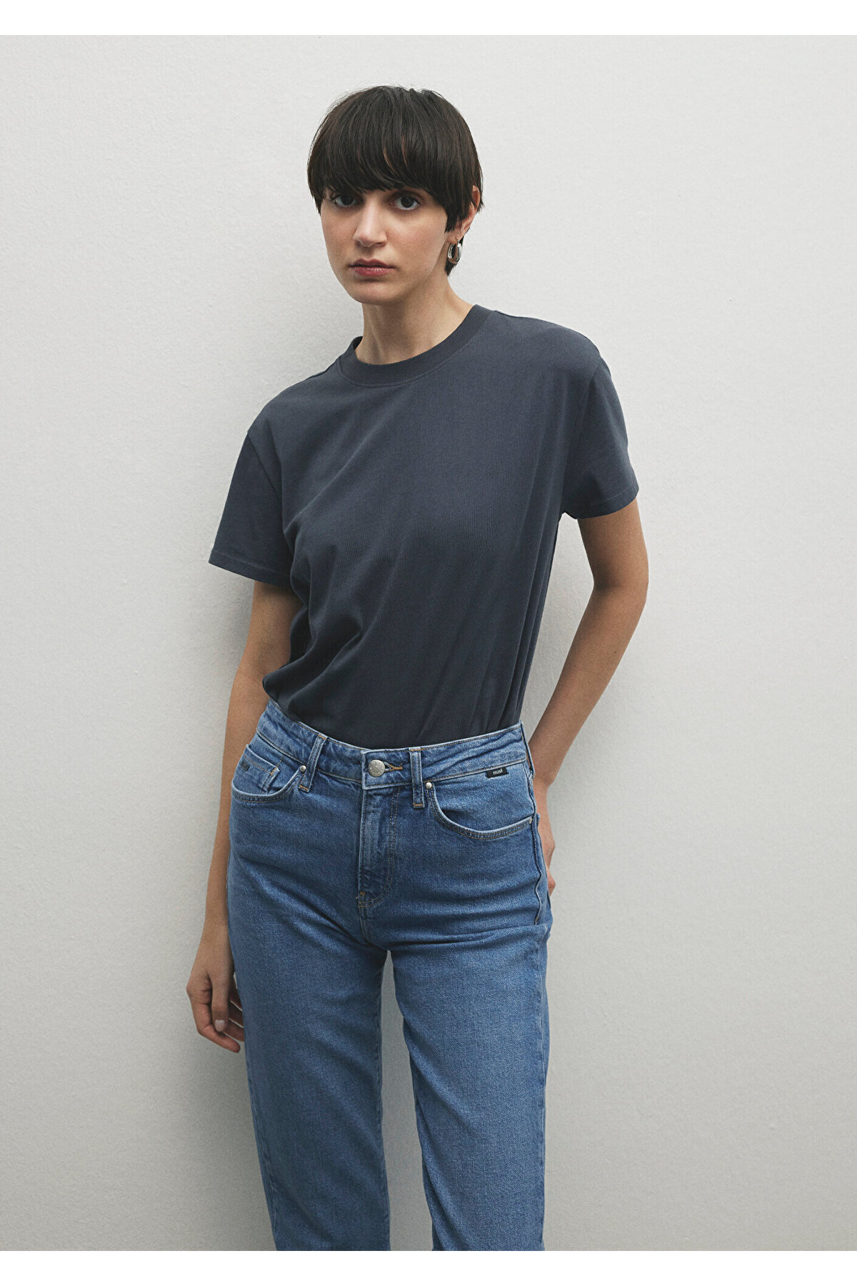 تیشرت زنانه بیسیک ریگولار فیت ذغالی Mavi