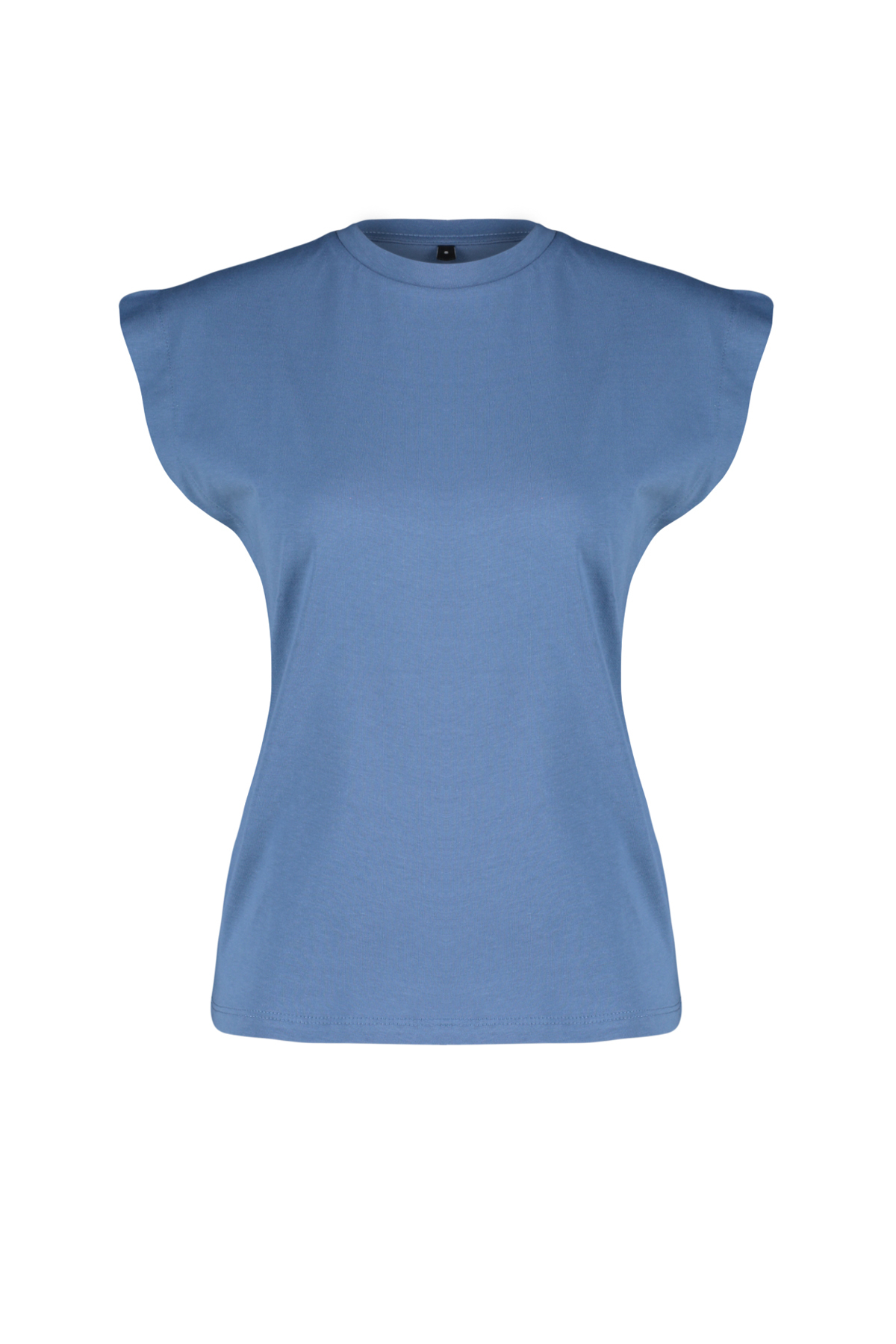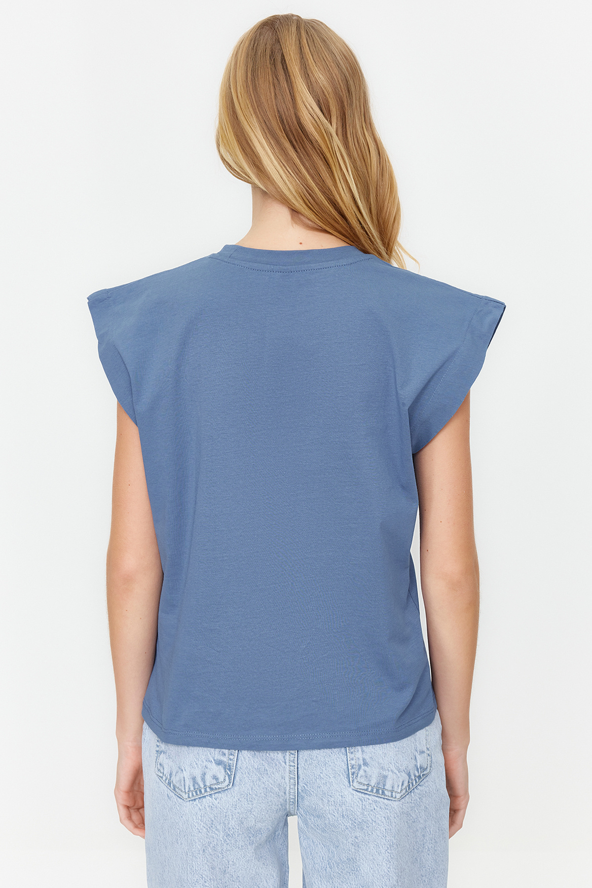 تیشرت زنانه یقه گرد ساده 100% پنبهای آبی مات Trendyolmilla