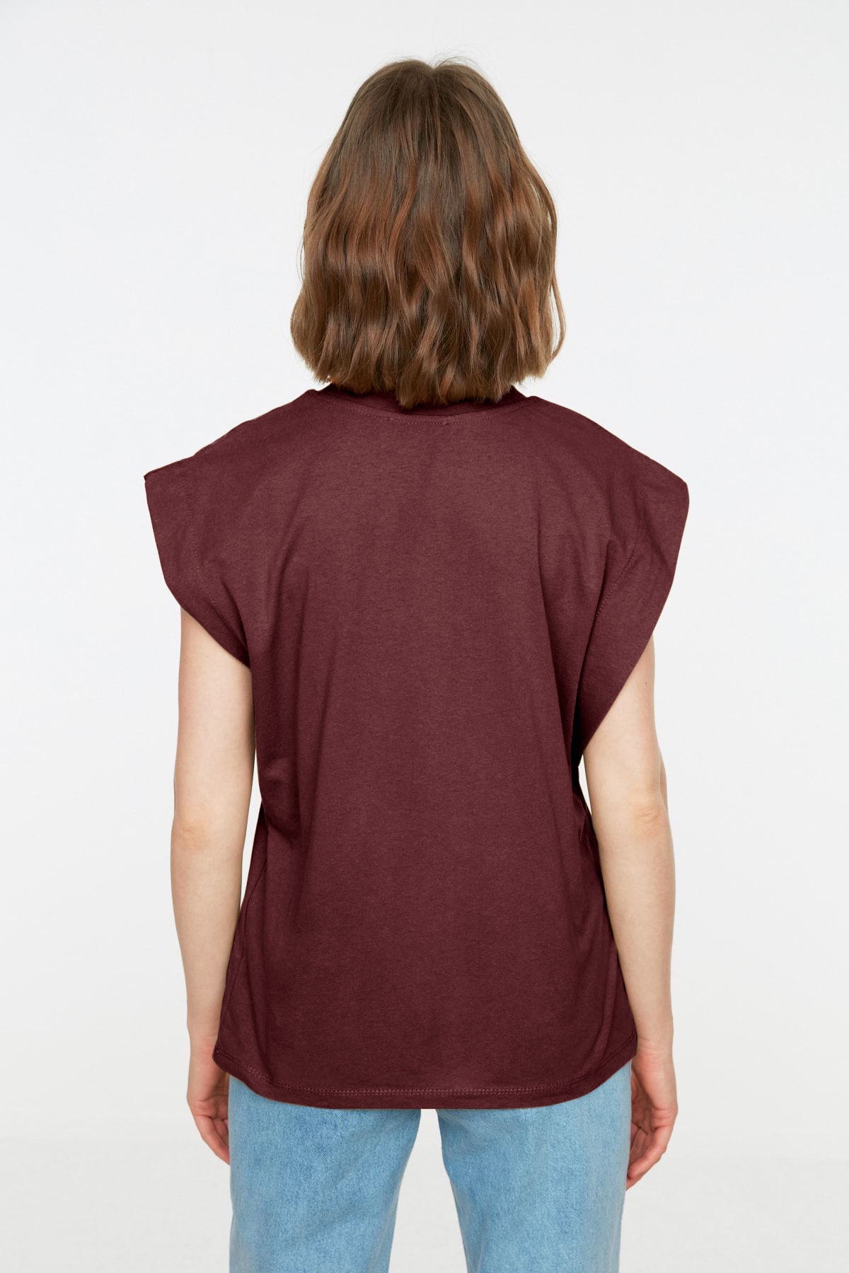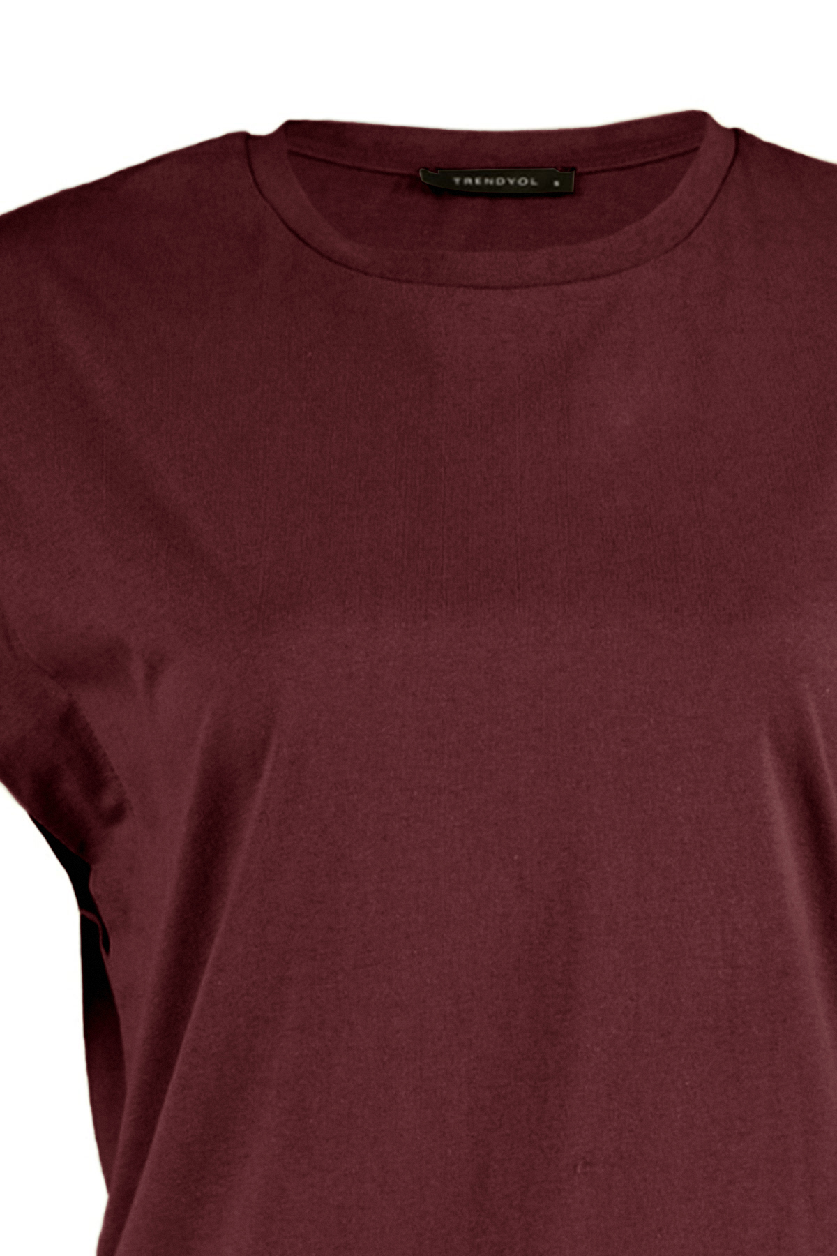 تیشرت نخی زنانه سرخ شرابی روشن Happiness Istanbul