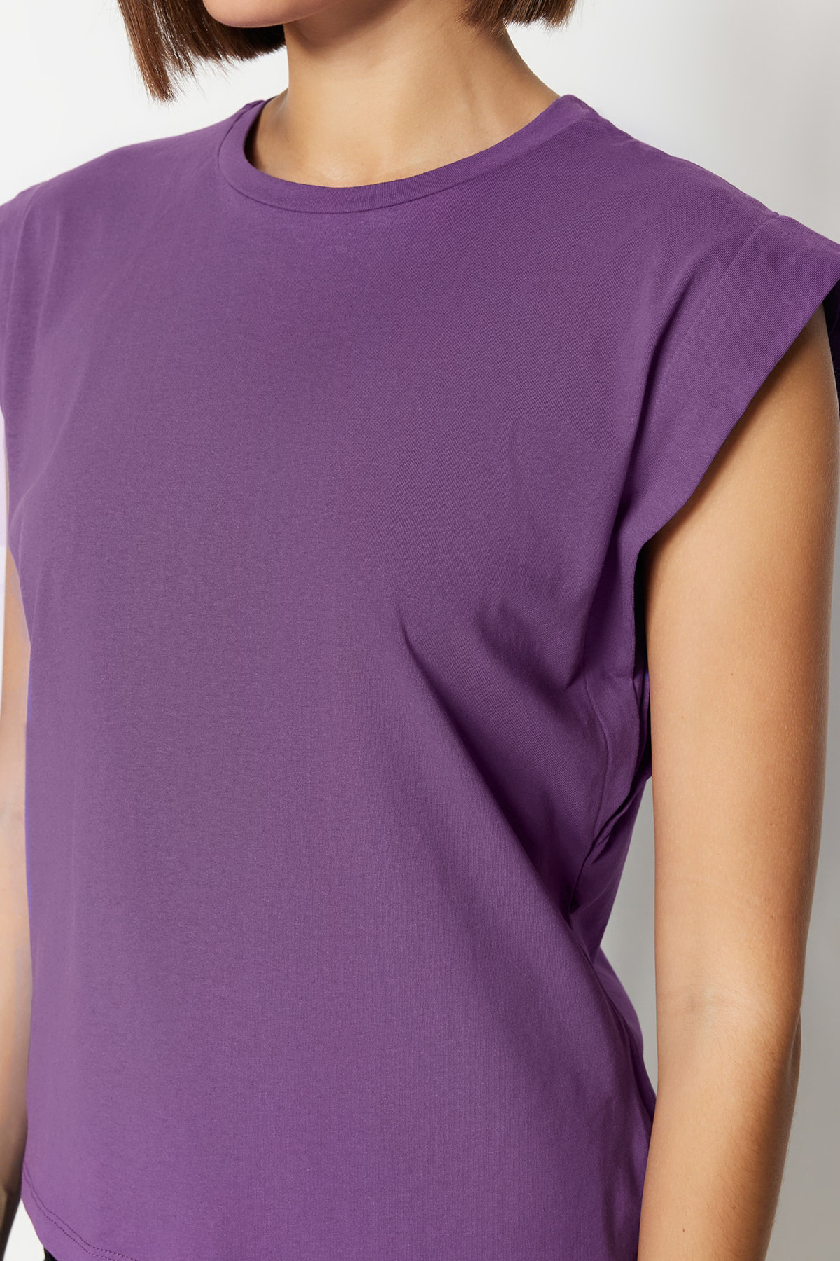 تیشرت زنانه یقه گرد ساده 100% پنبهای بنفش Trendyolmilla