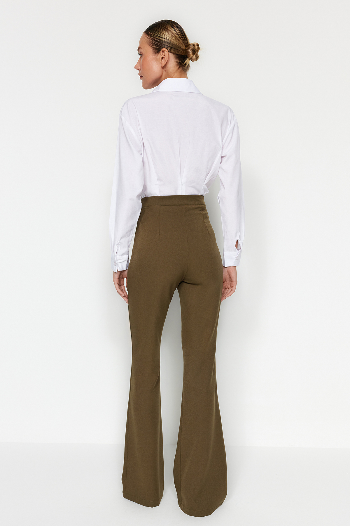 شلوار زنانه پارچه ای اسپانیایی خاکی TRENDYOLMILLA