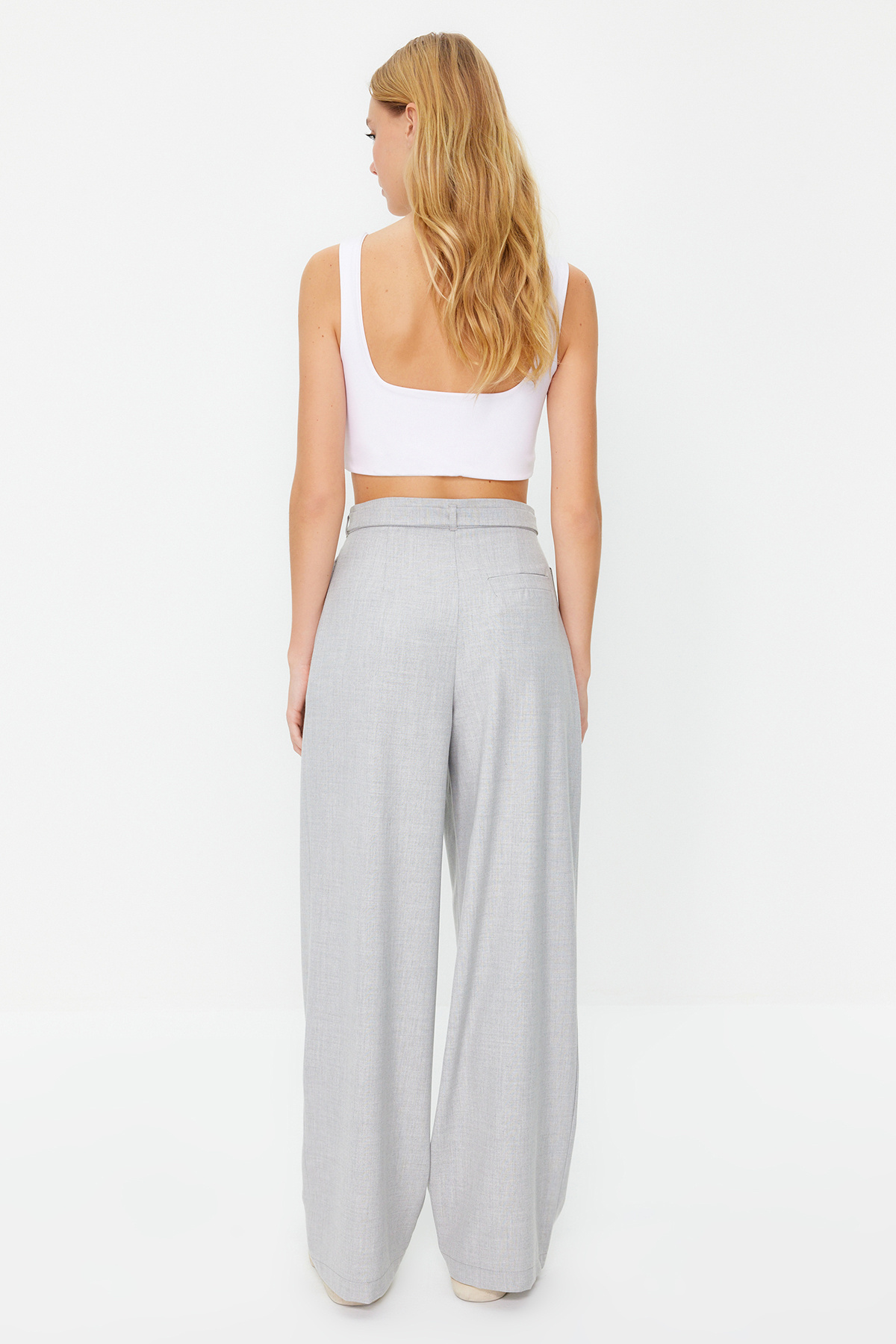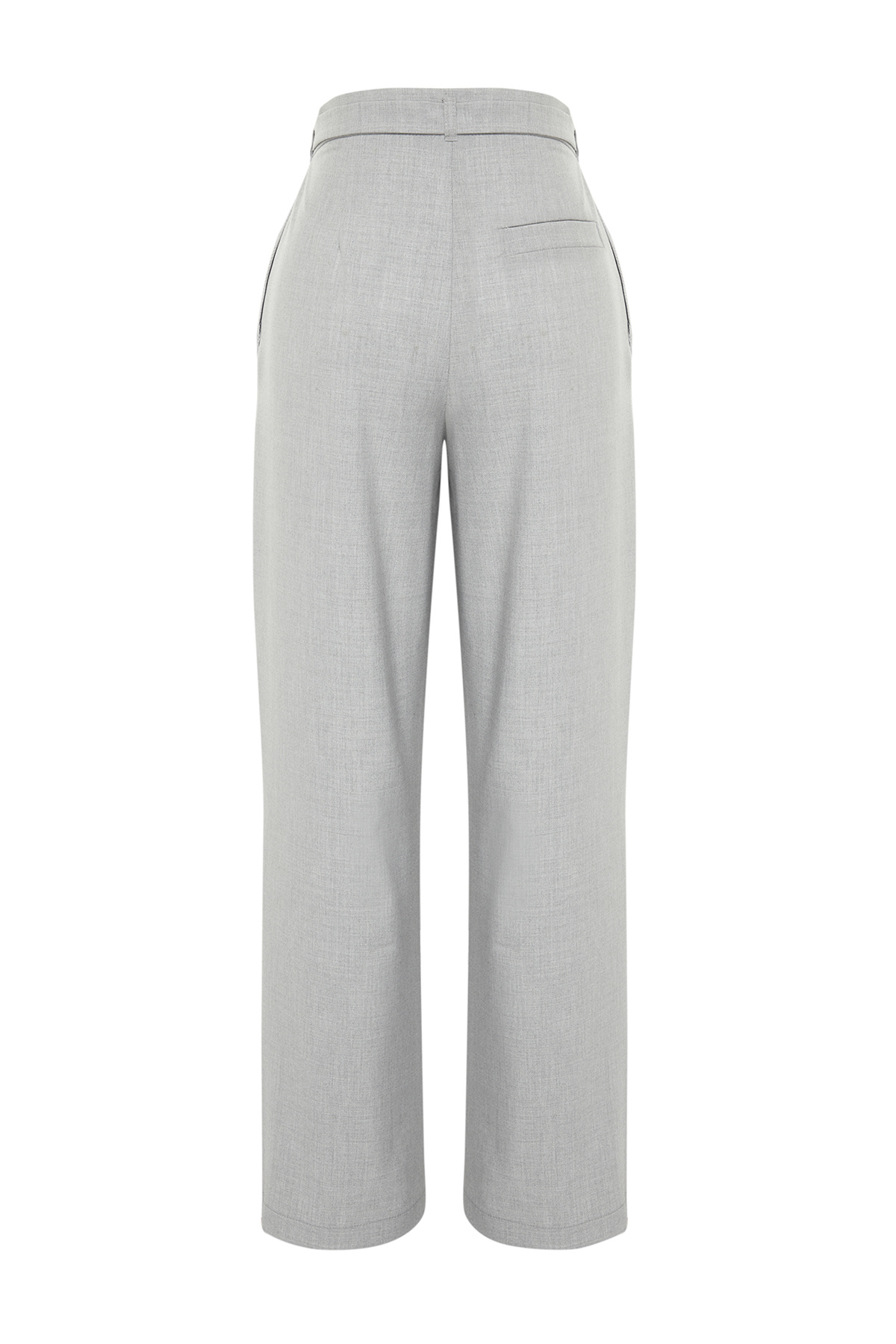 شلوار زنانه کمربند راسته خاکستری TRENDYOLMILLA