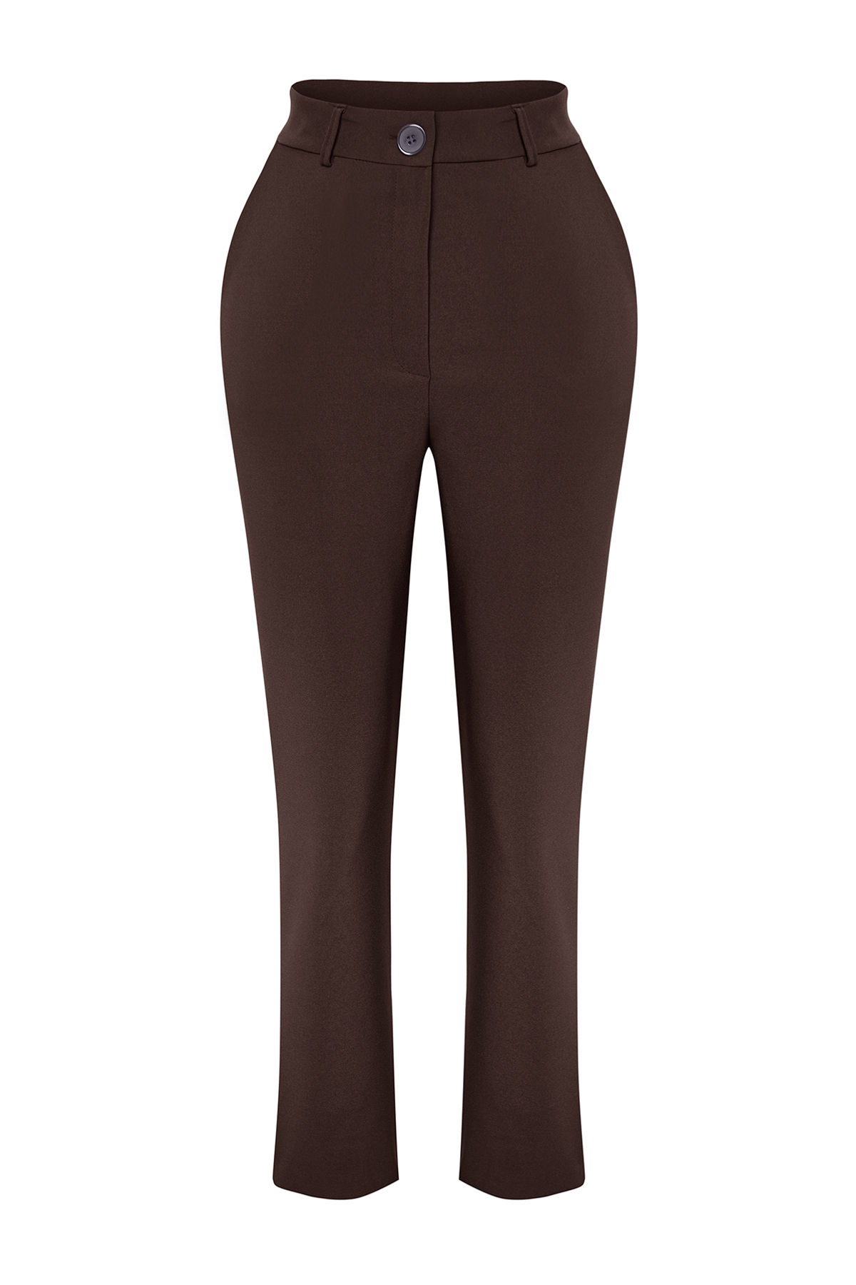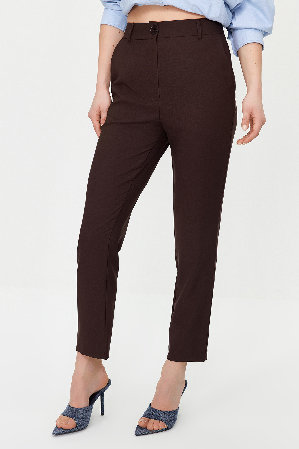 شلوار زنانه پارچه ای بیسیک قهوه ای تیره TRENDYOLMILLA