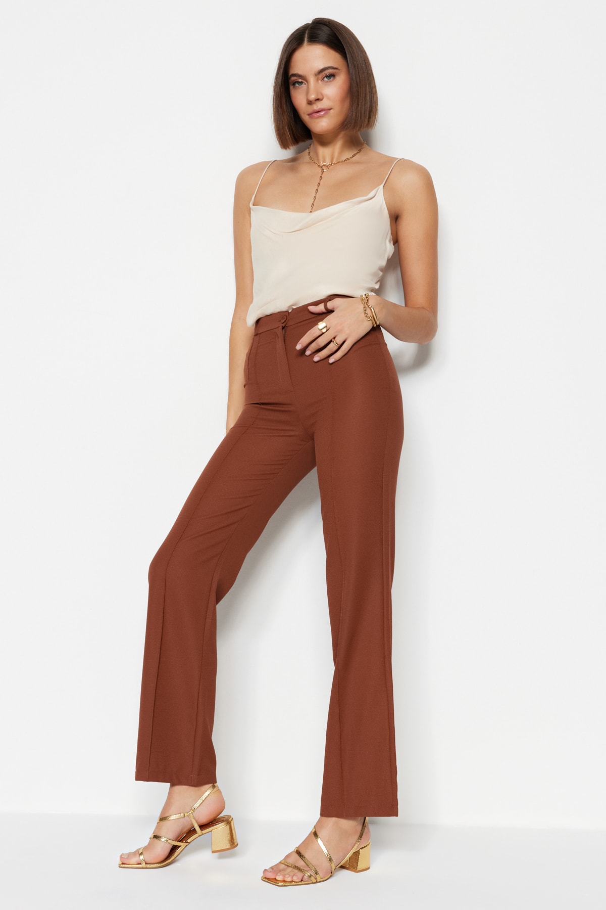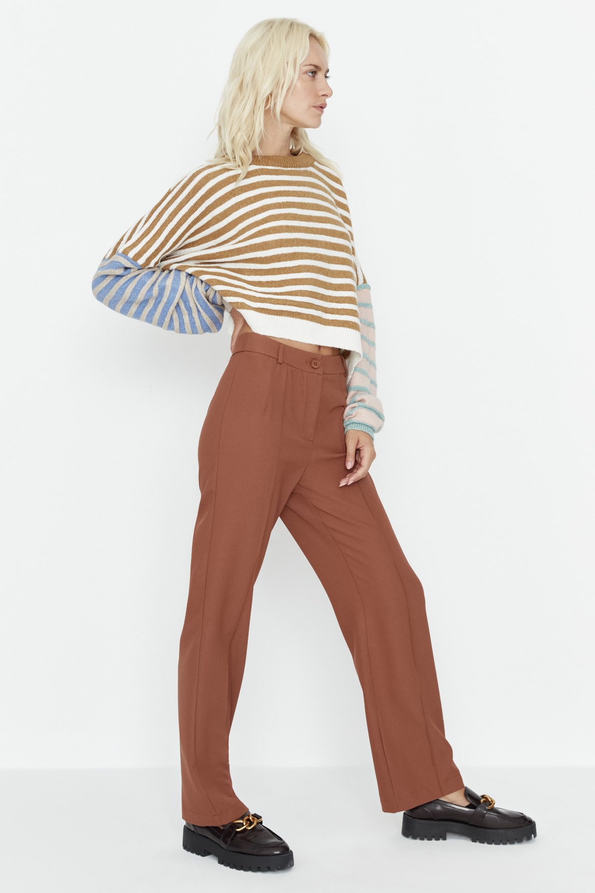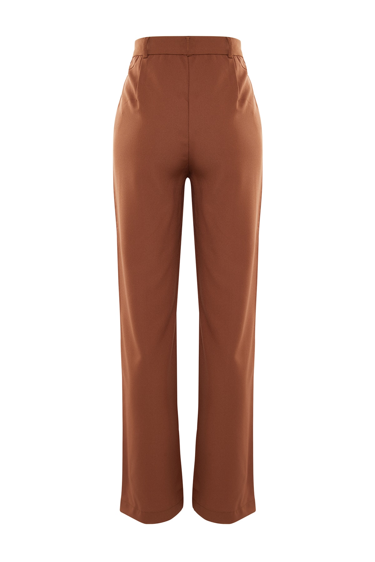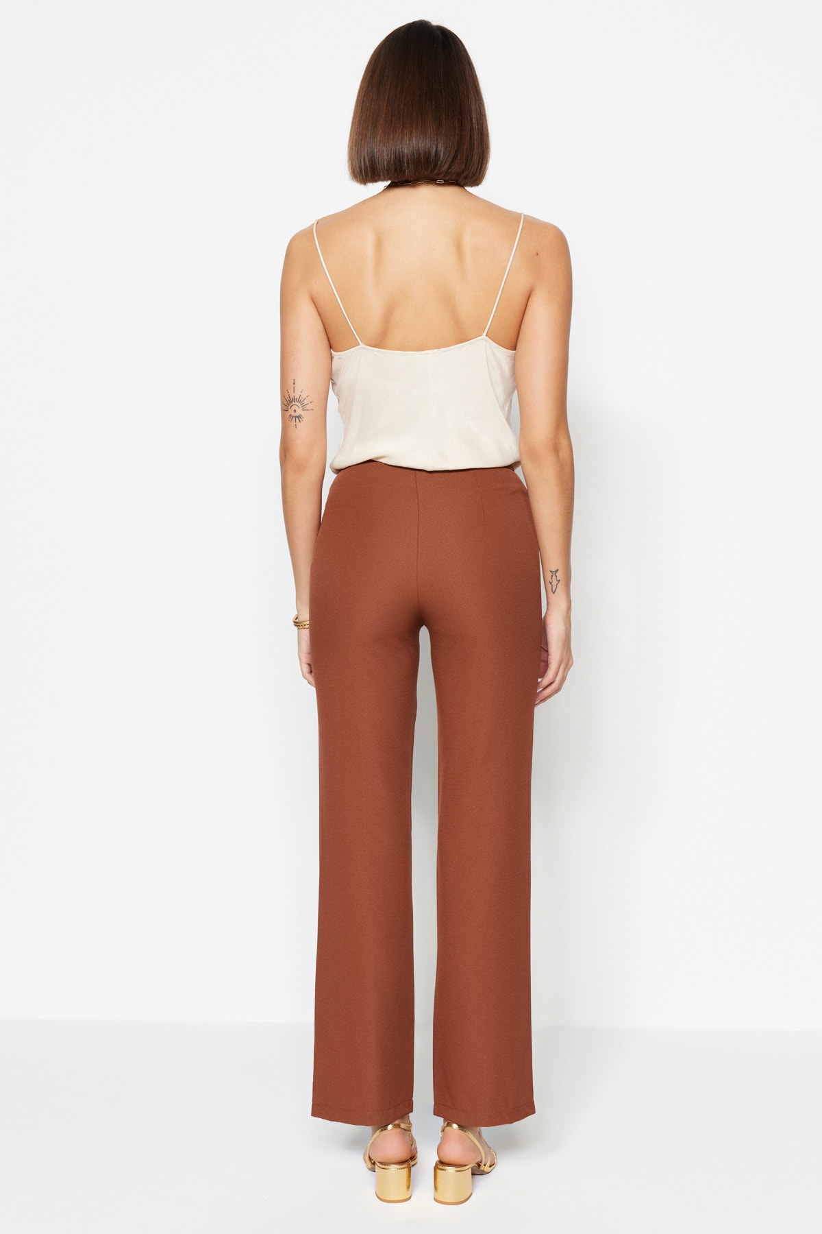 شلوار زنانه با برش مستقیم با پاچه کوتاه شکلاتی TRENDYOLMILLA