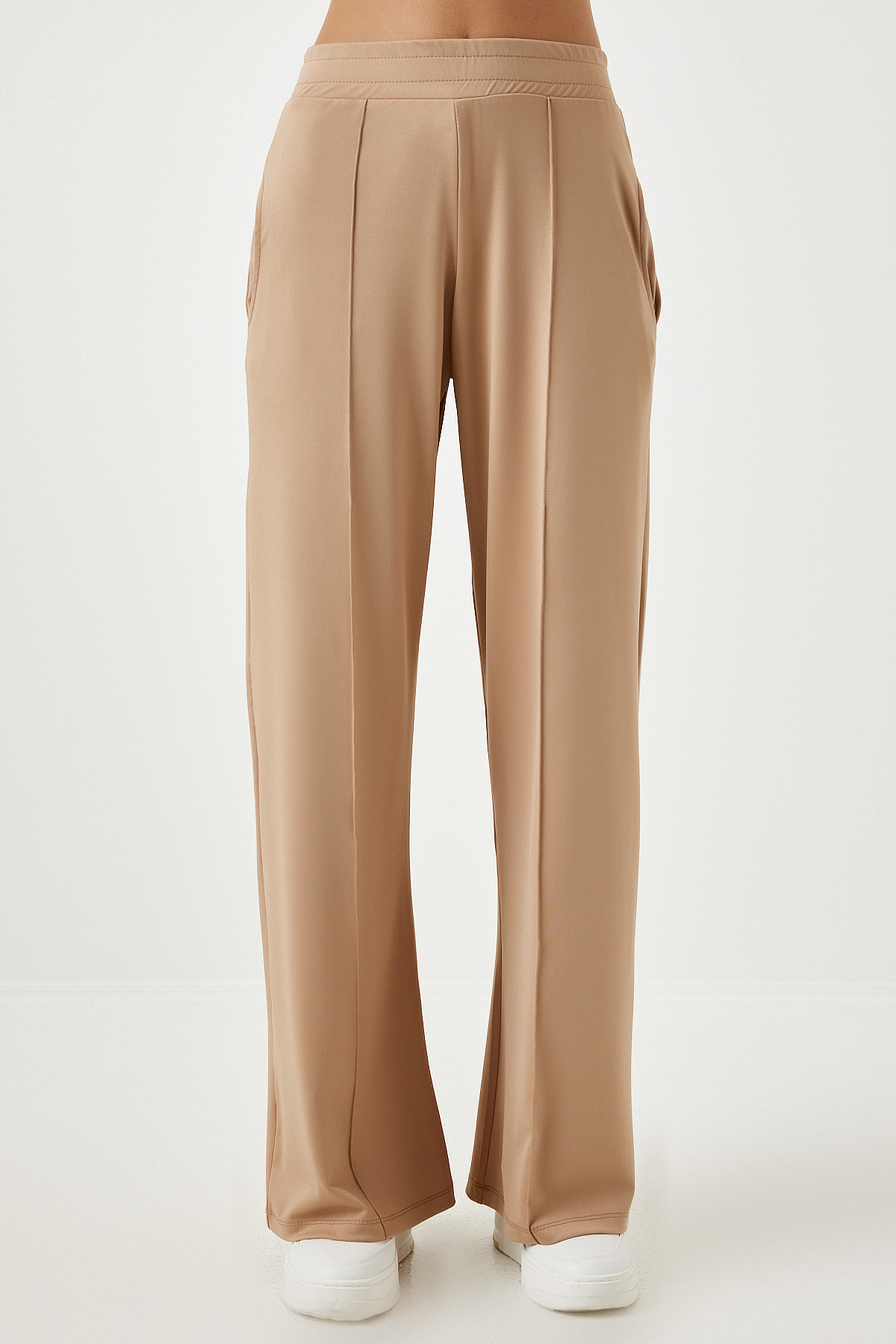 شلوار زنانه پارچه کتانی ترکیبی عریض H&M