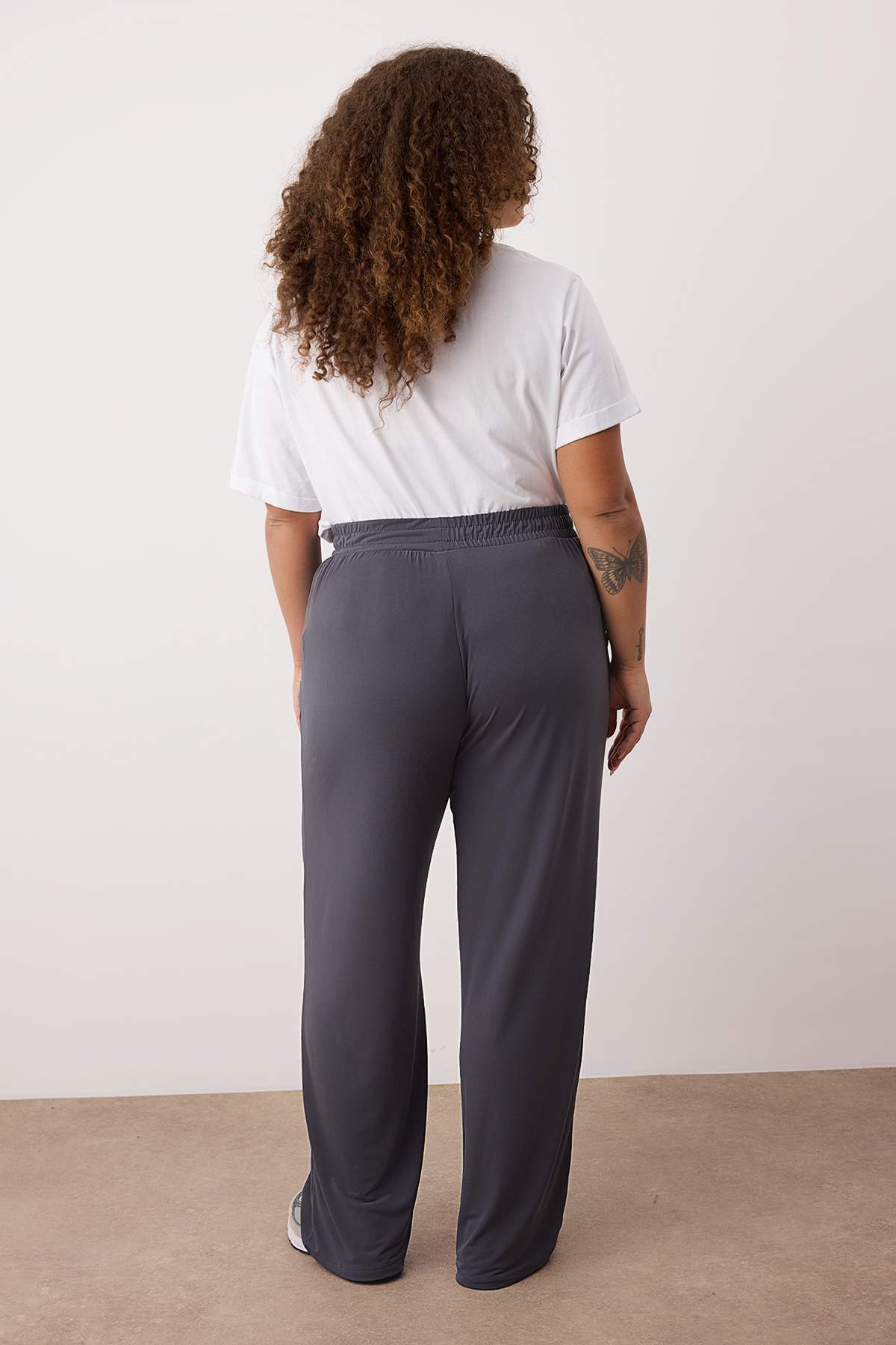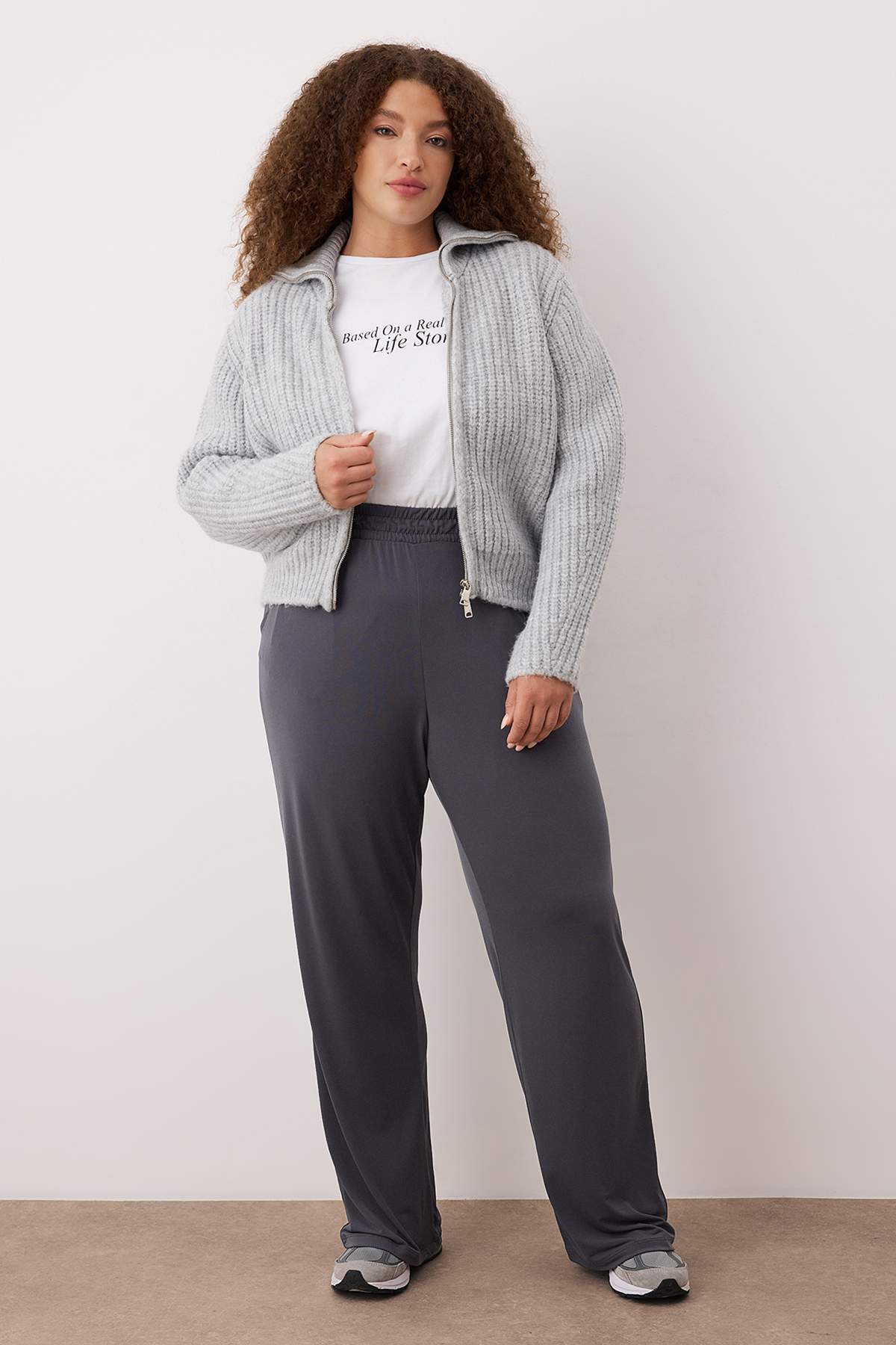 شلوار زنانه بافتنی خاکستری کمر بلند و دمپا گشاد trendyolmilla