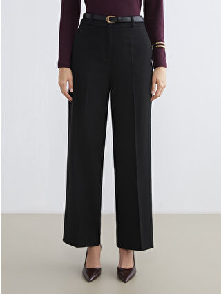 شلوار زنانه دمپا گشاد با کمربند مشکی LCWAIKIKI