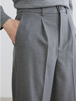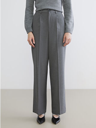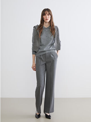 شلوار پلیسهدار زنانه گشاد طوسی LCW