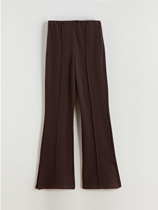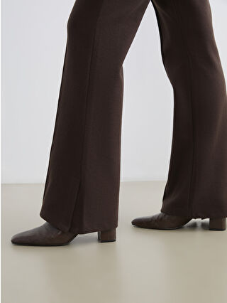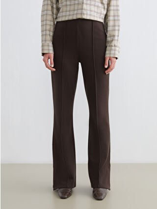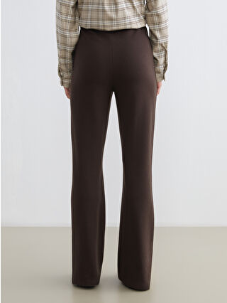 شلوار زنانه کمر کشی با دمپا گشاد قهوه ای LCW