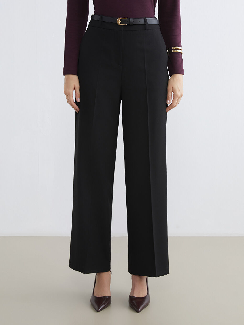 شلوار زنانه جیبدار و گشاد پالازو از جنس پارچه بلماندو سورمه ای Defacto