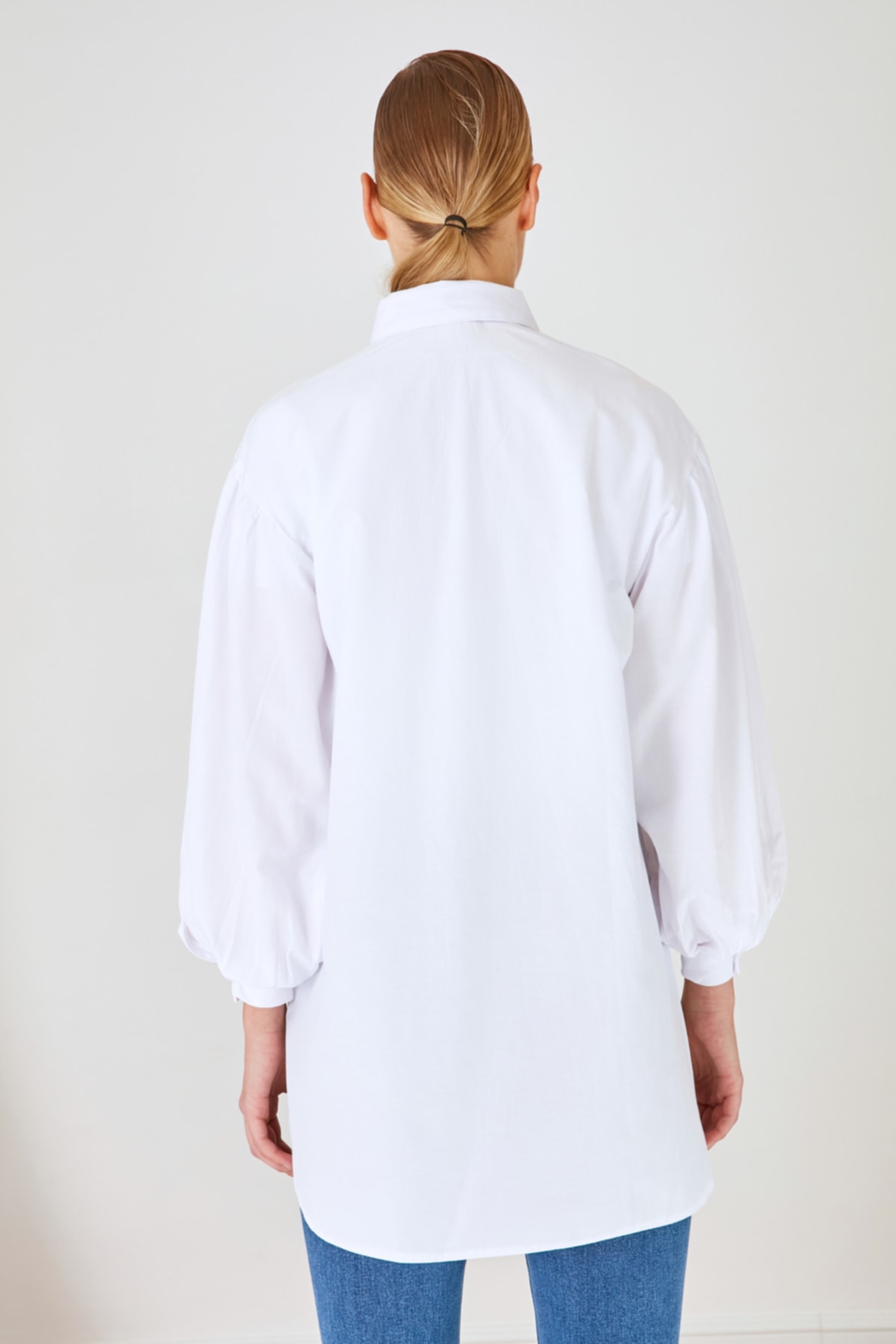 پیراهن زنانه آستین بالونی سفید TRENDYOL MODEST