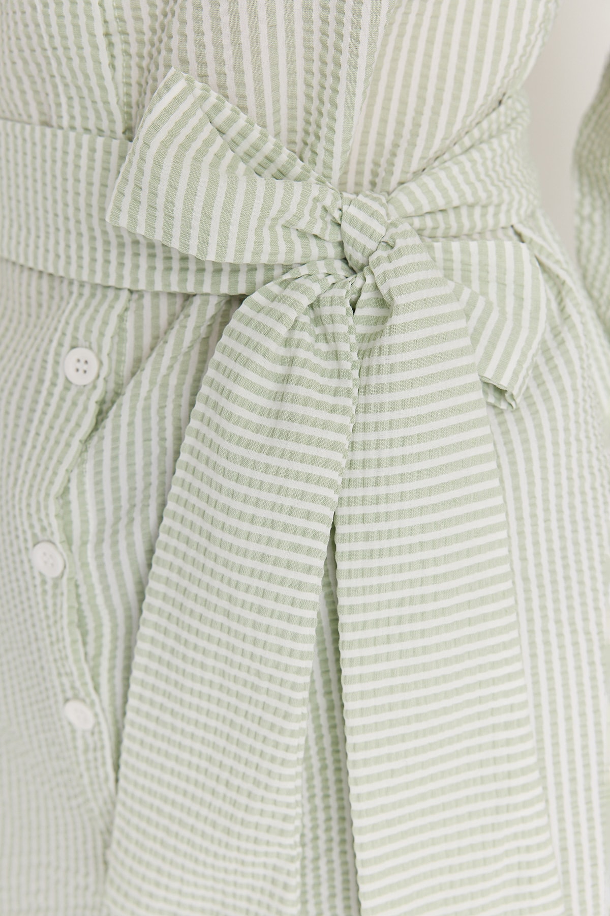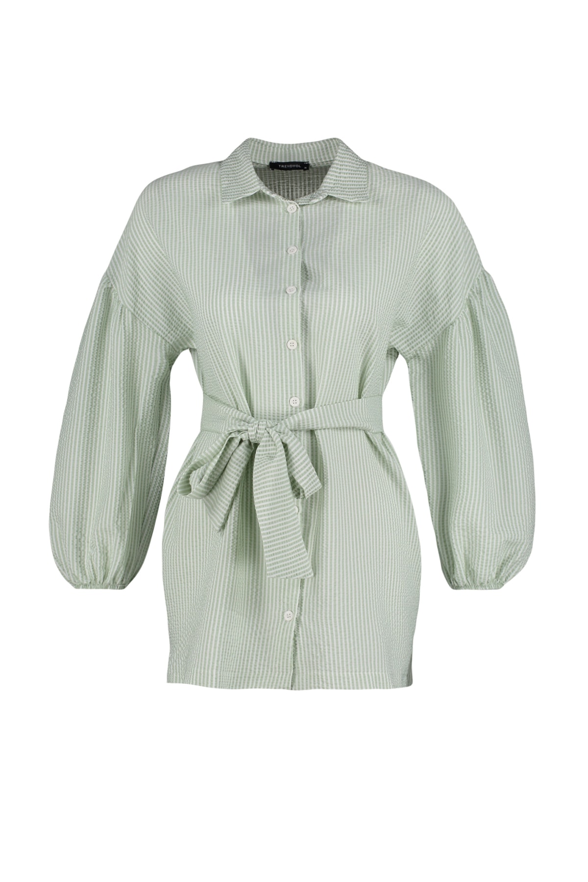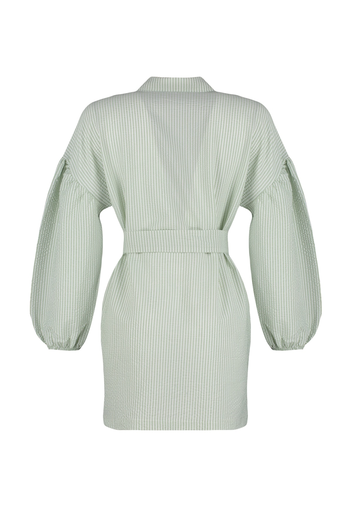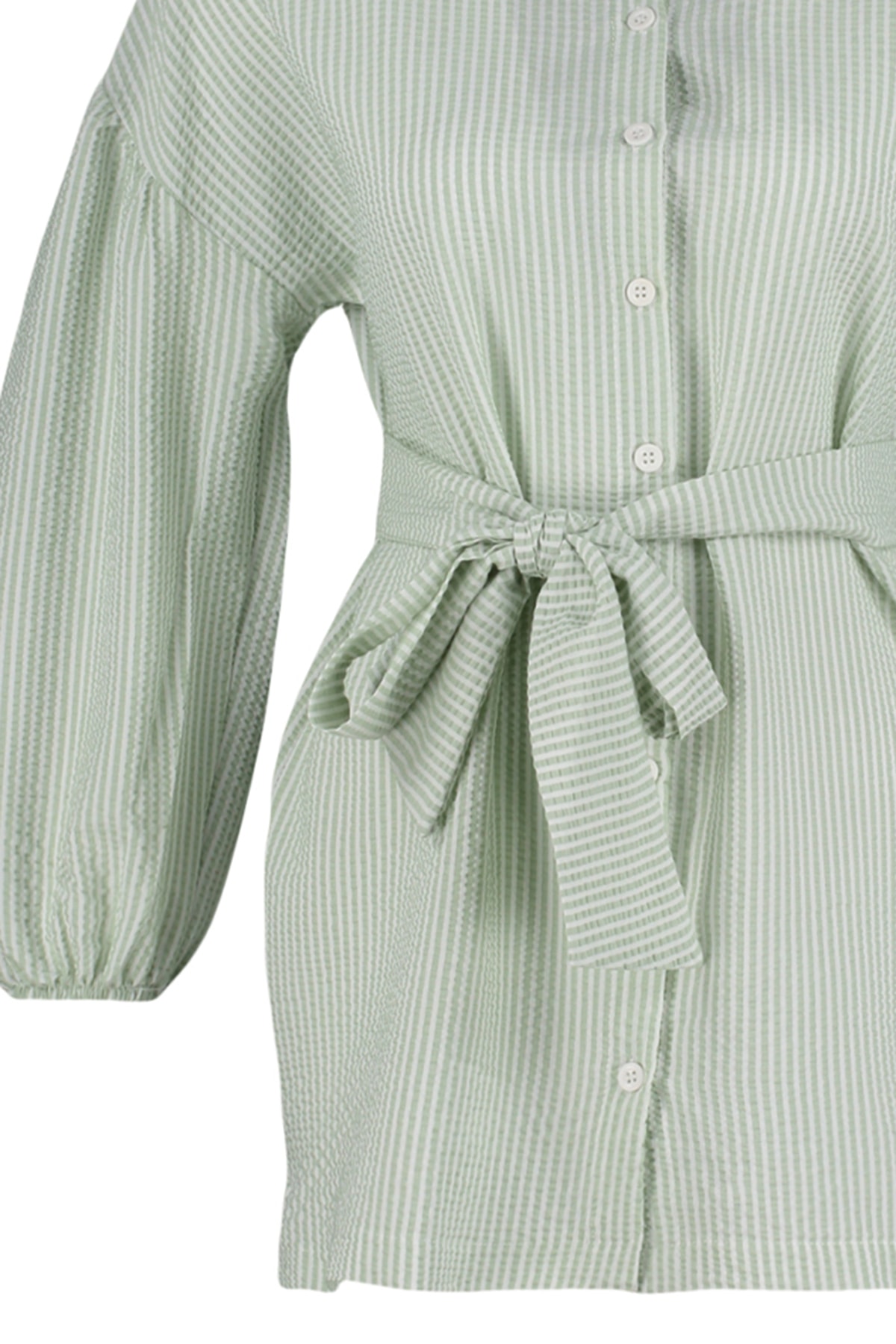 پیراهن زنانه بلند آستین بادکنکی راه راه سبز روشن TRENDYOL MODEST