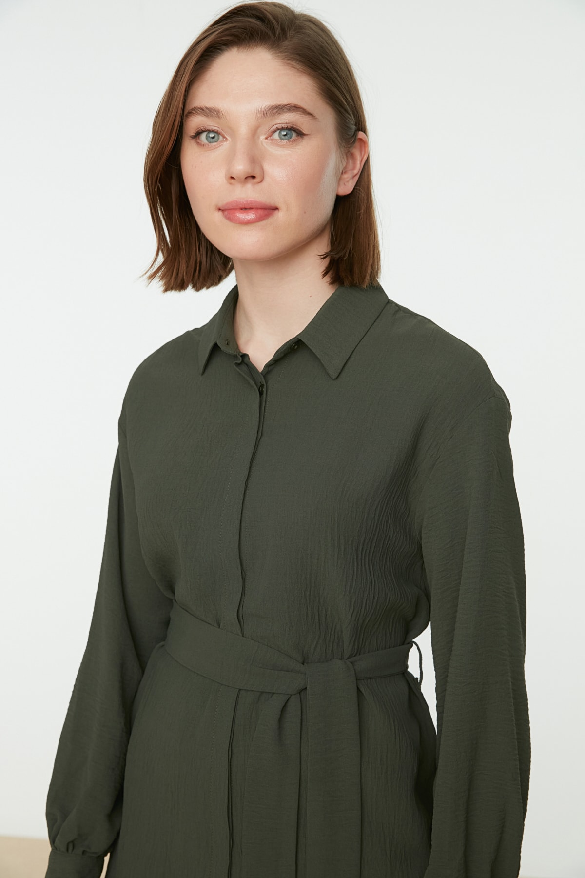 پیراهن زنانه بلند با کمربند TRENDYOL MODEST سبز