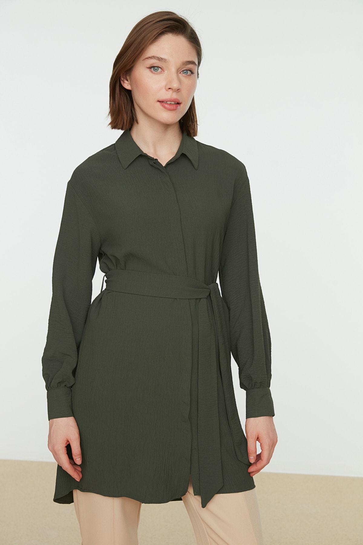 صفحه اصلی\همه مانتو ها\پیراهن زنانه بلند با کمربند TRENDYOL MODEST سبز