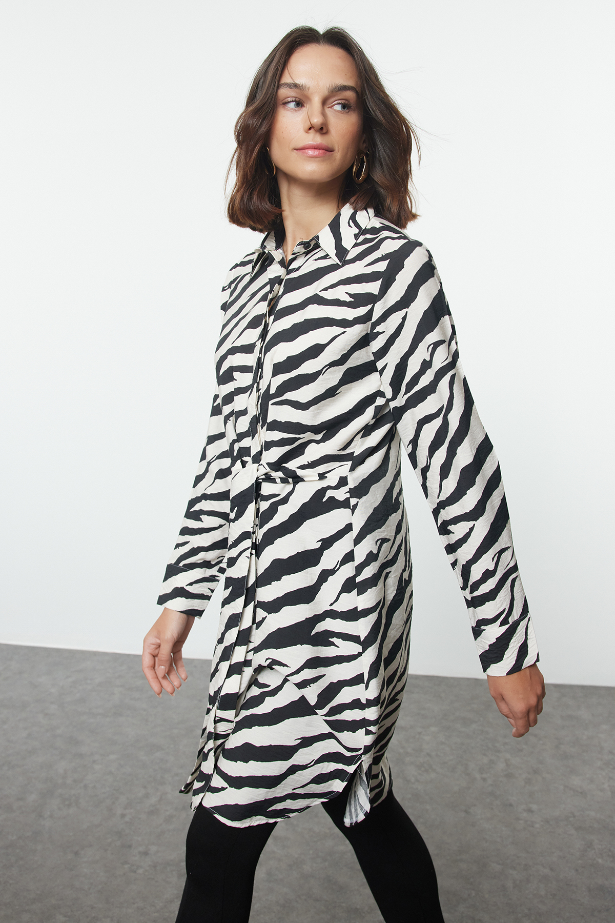 پیراهن زنانه بلند با طرح گورخر TRENDYOL MODEST