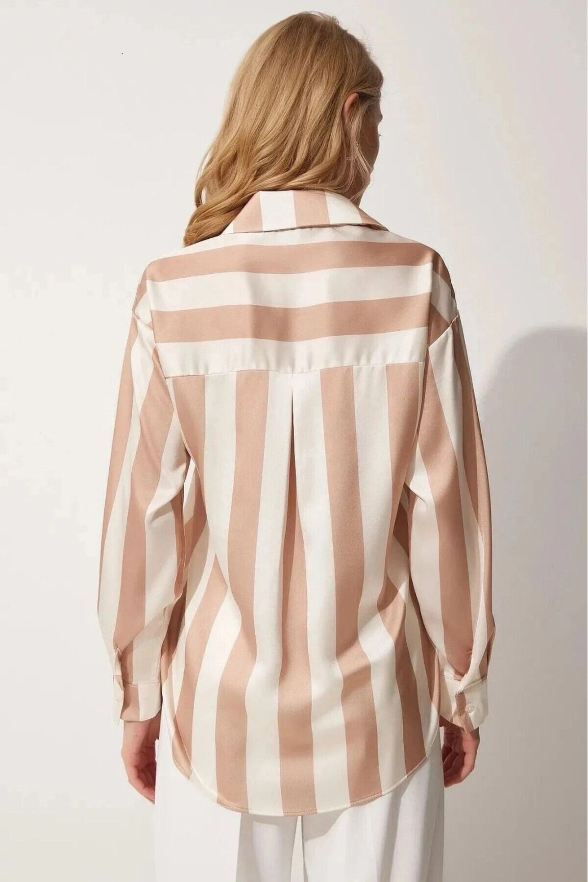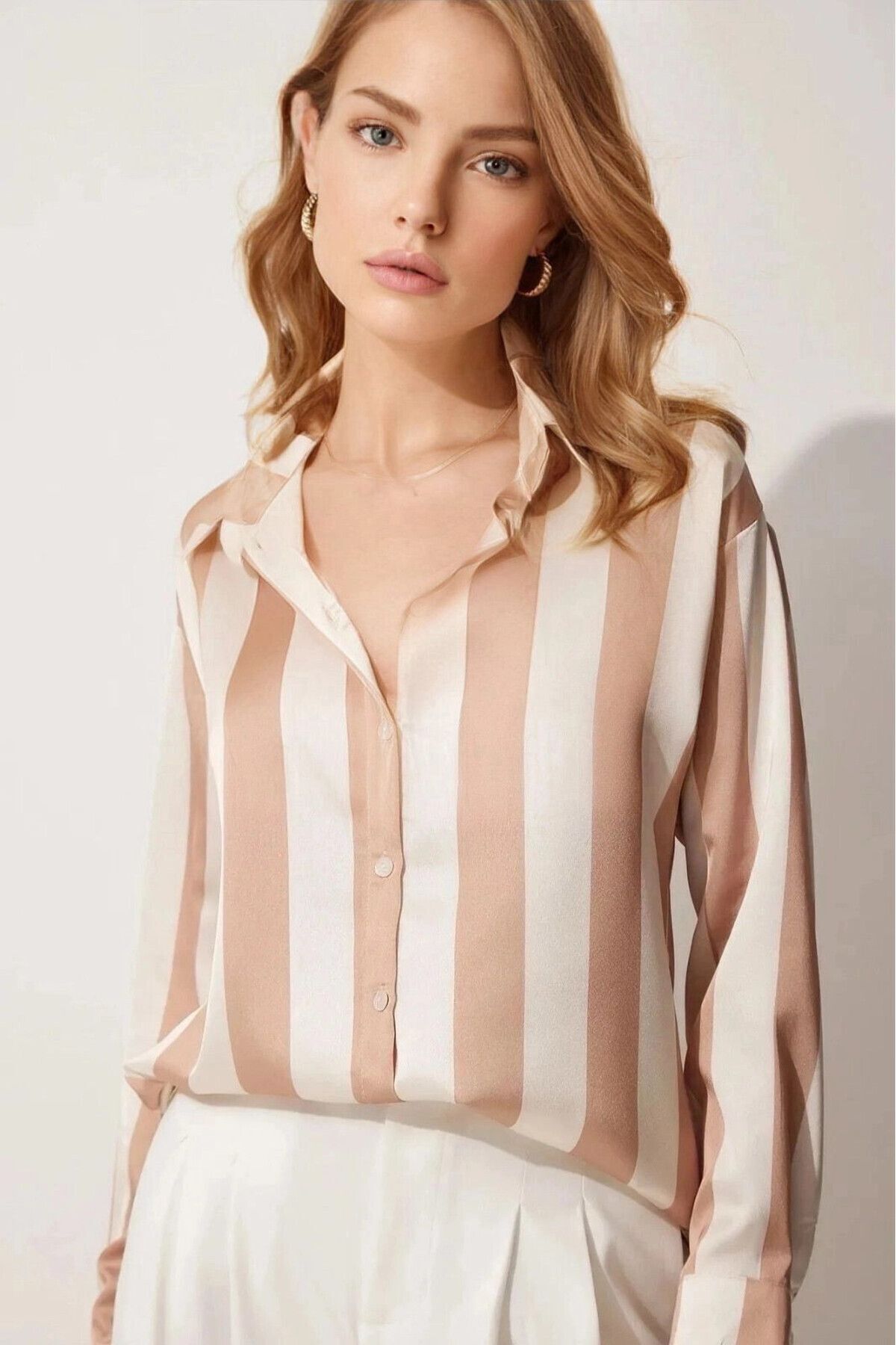 صفحه اصلی\همه پیراهن ها\پیراهن ساتن راه راه کرم زنانه hazelin