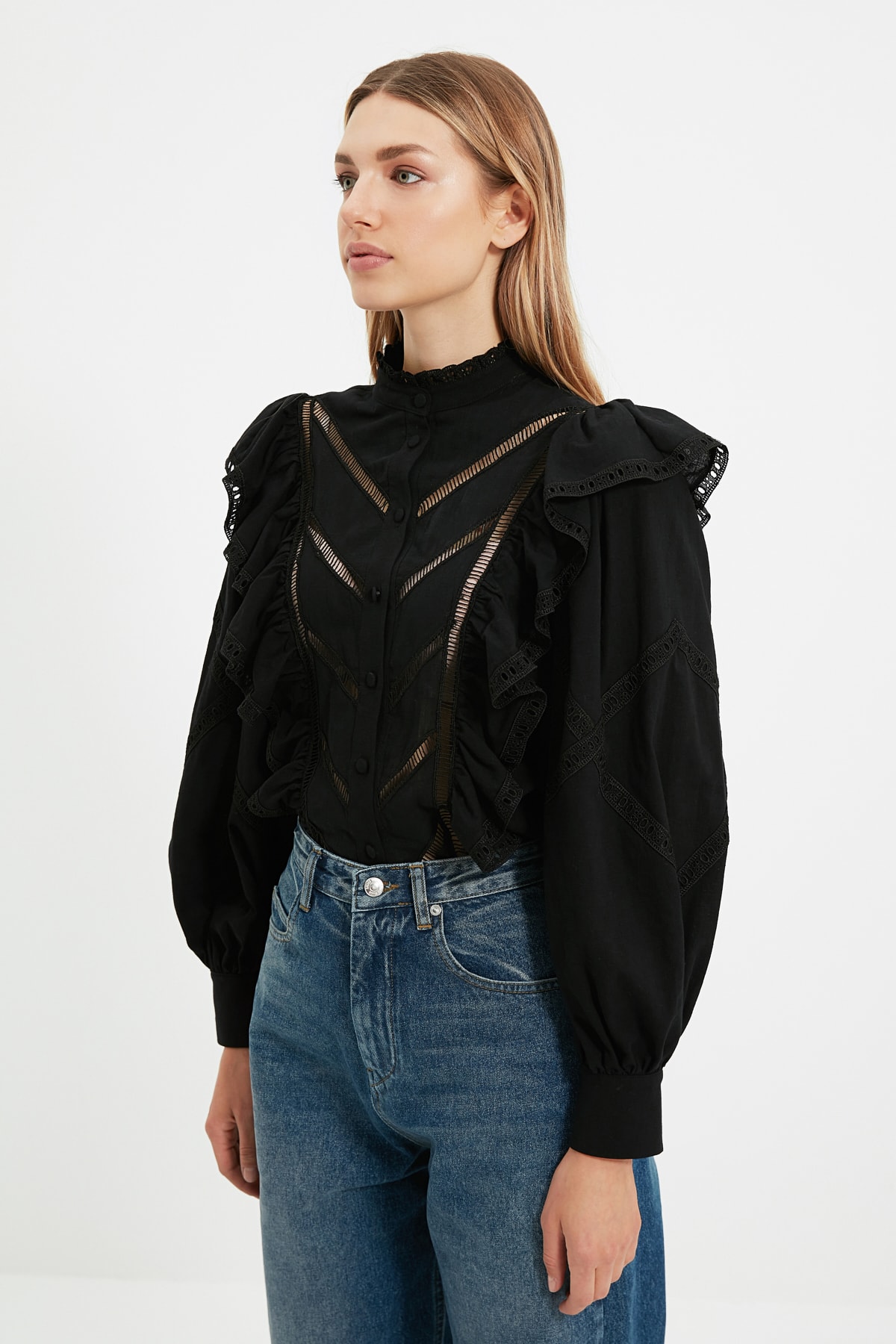 پیراهن زنانه مشکی با اکسسوری TRENDYOLMILLA
