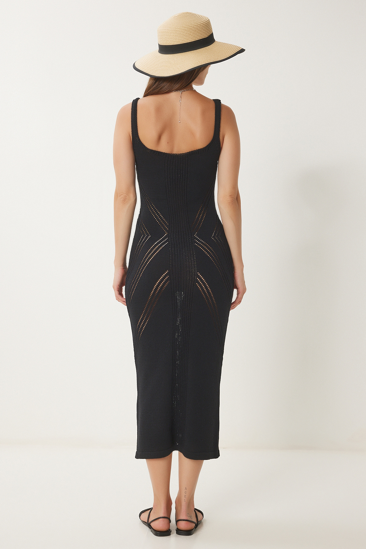 لباس بافتنی تابستانی زنانه مشکی طرح دار و بندی Happiness Istanbul
