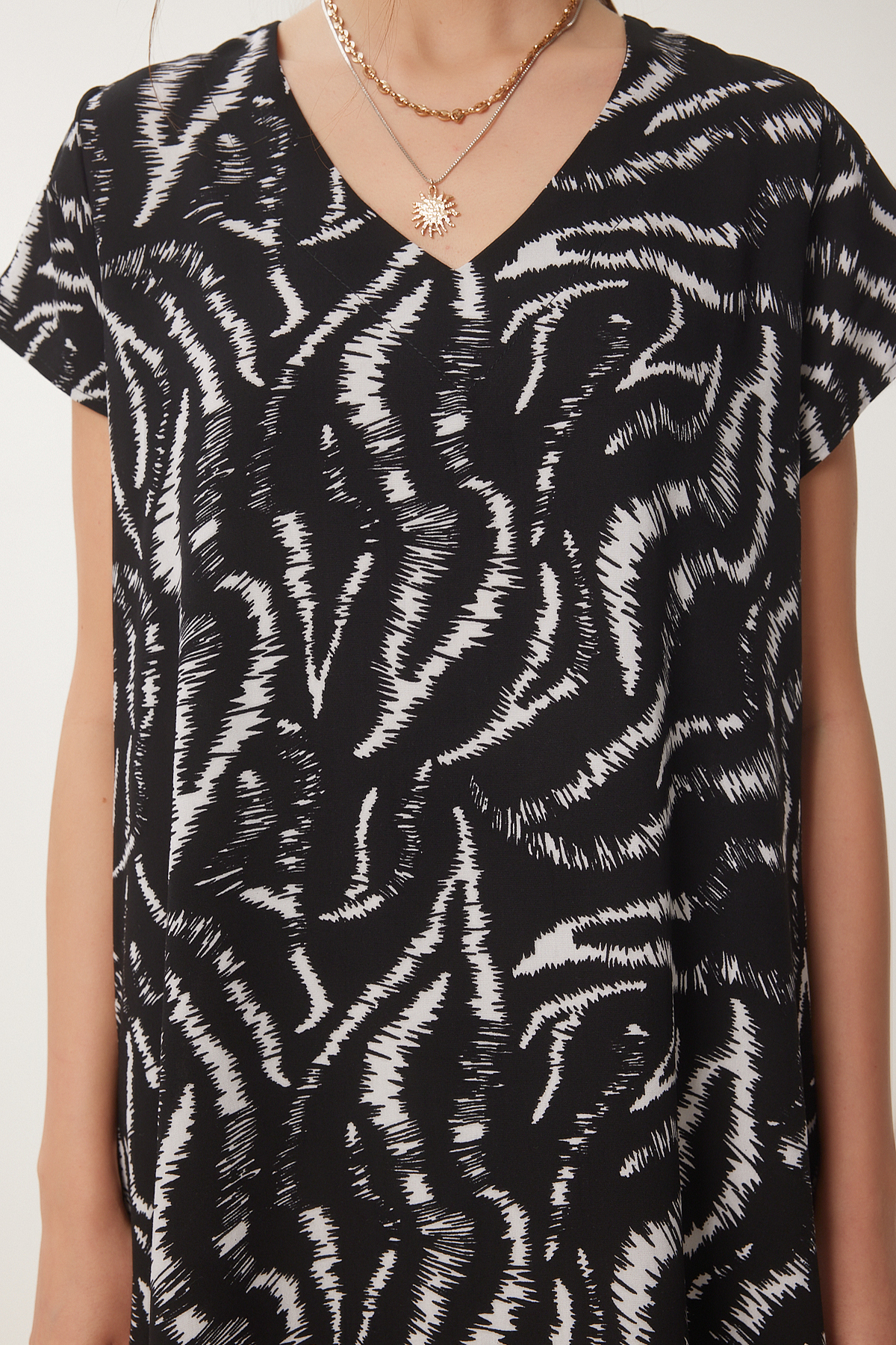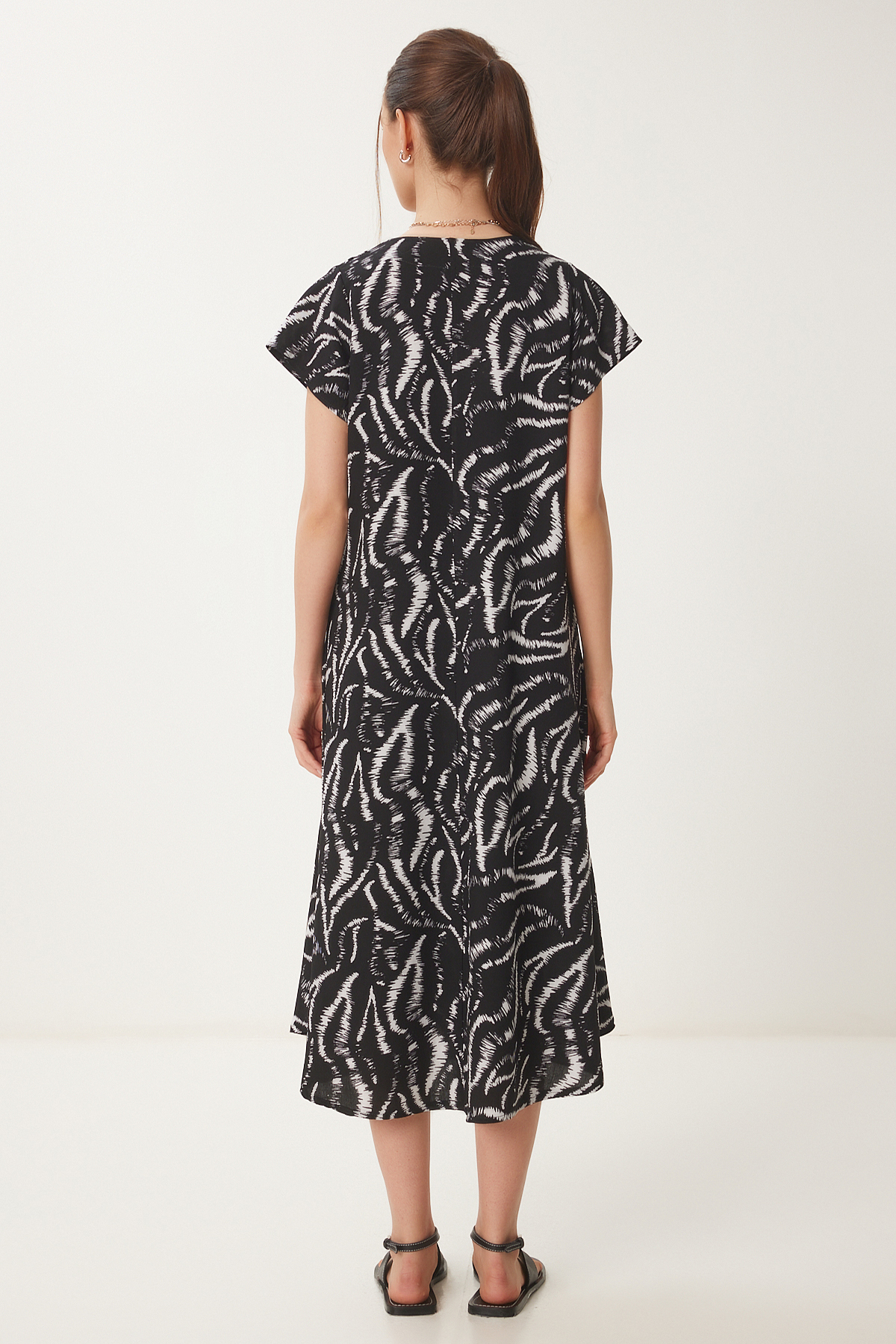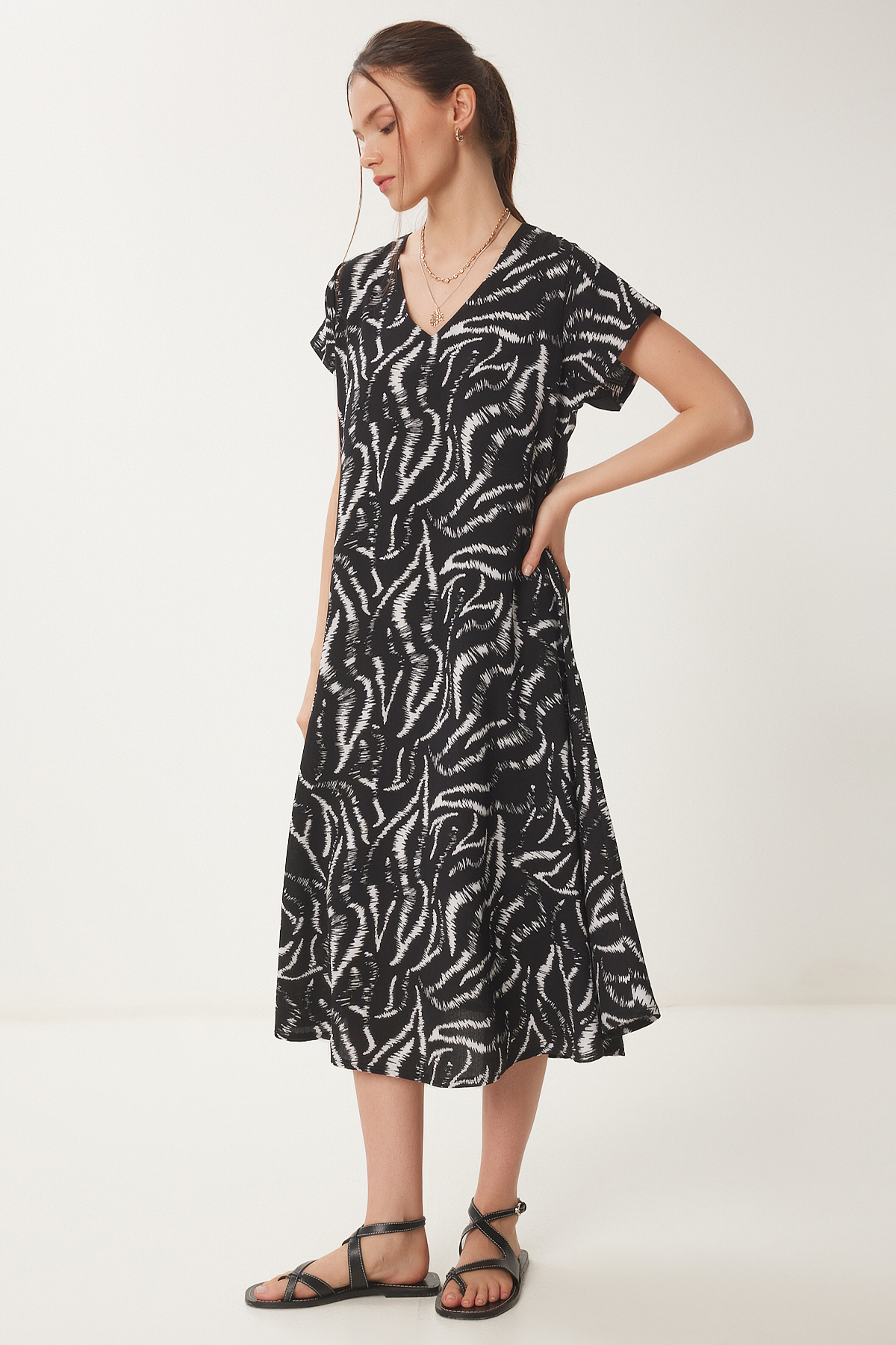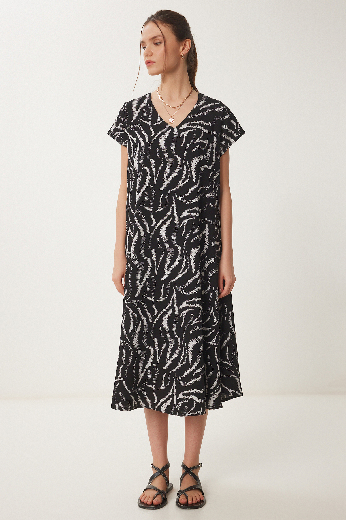 لباس زنانه میدی تابستانی طرح دار سیاه و سفید Happiness Istanbul