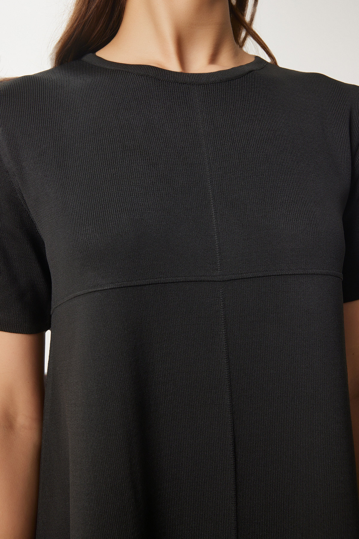 لباس بافتنی ساده مشکی زنانه سایز بزرگ Happiness Istanbul