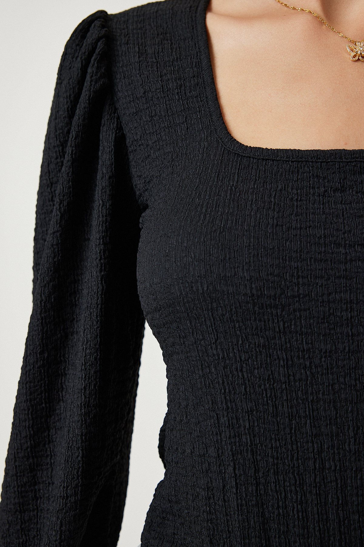 بلوز زنانه بافتنی یقه مربعی Happiness Istanbul مشکی