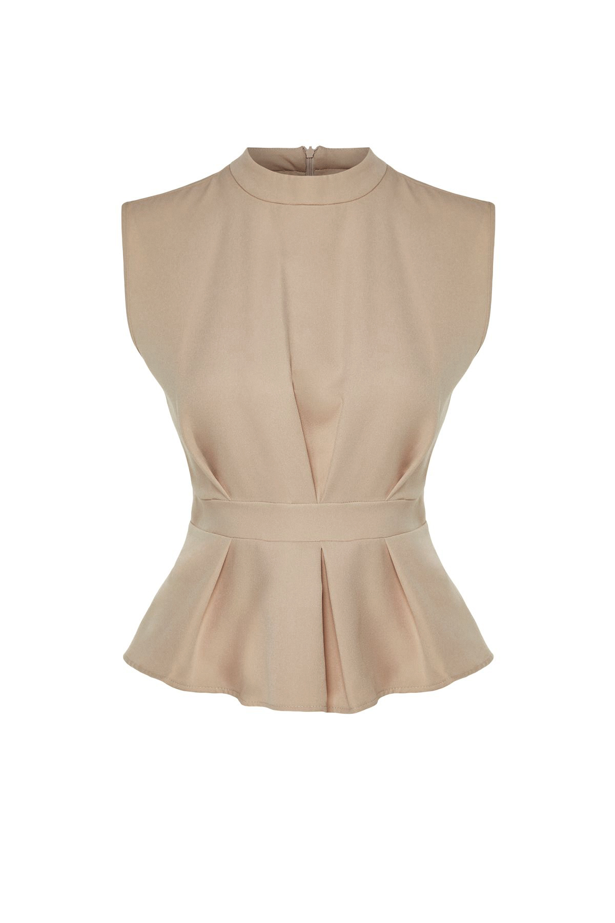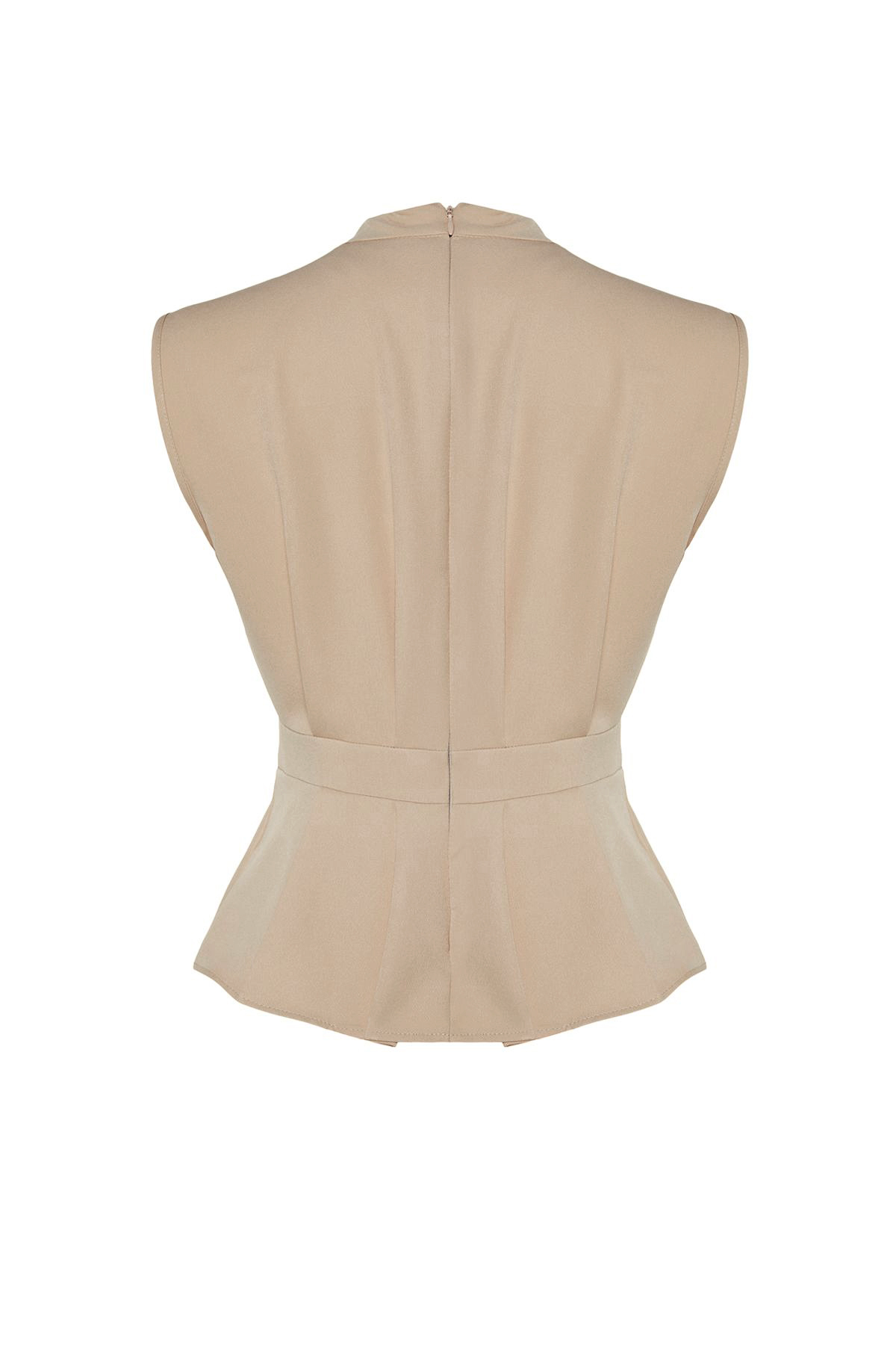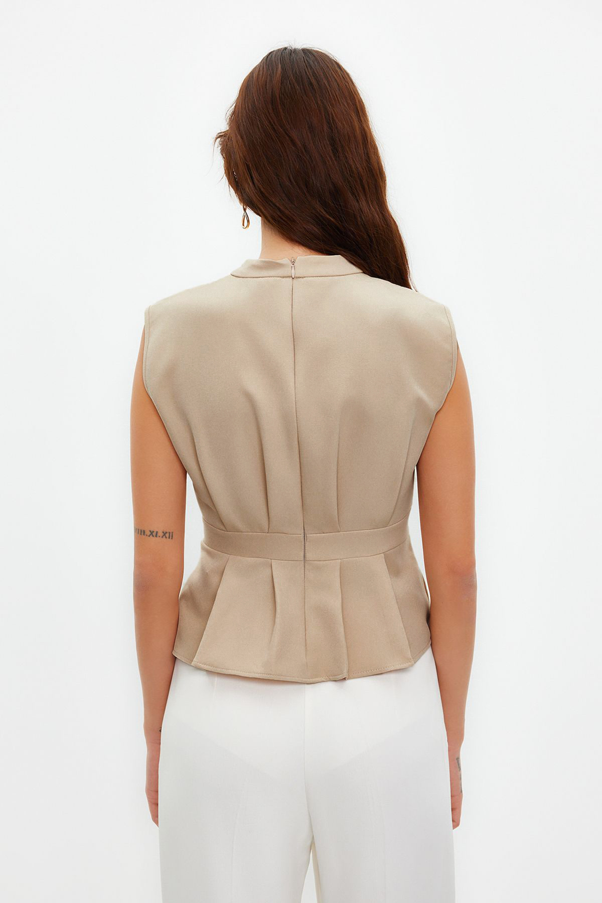 بلوز زنانه آستین دار یقه گرد بژ TRENDYOLMILLA