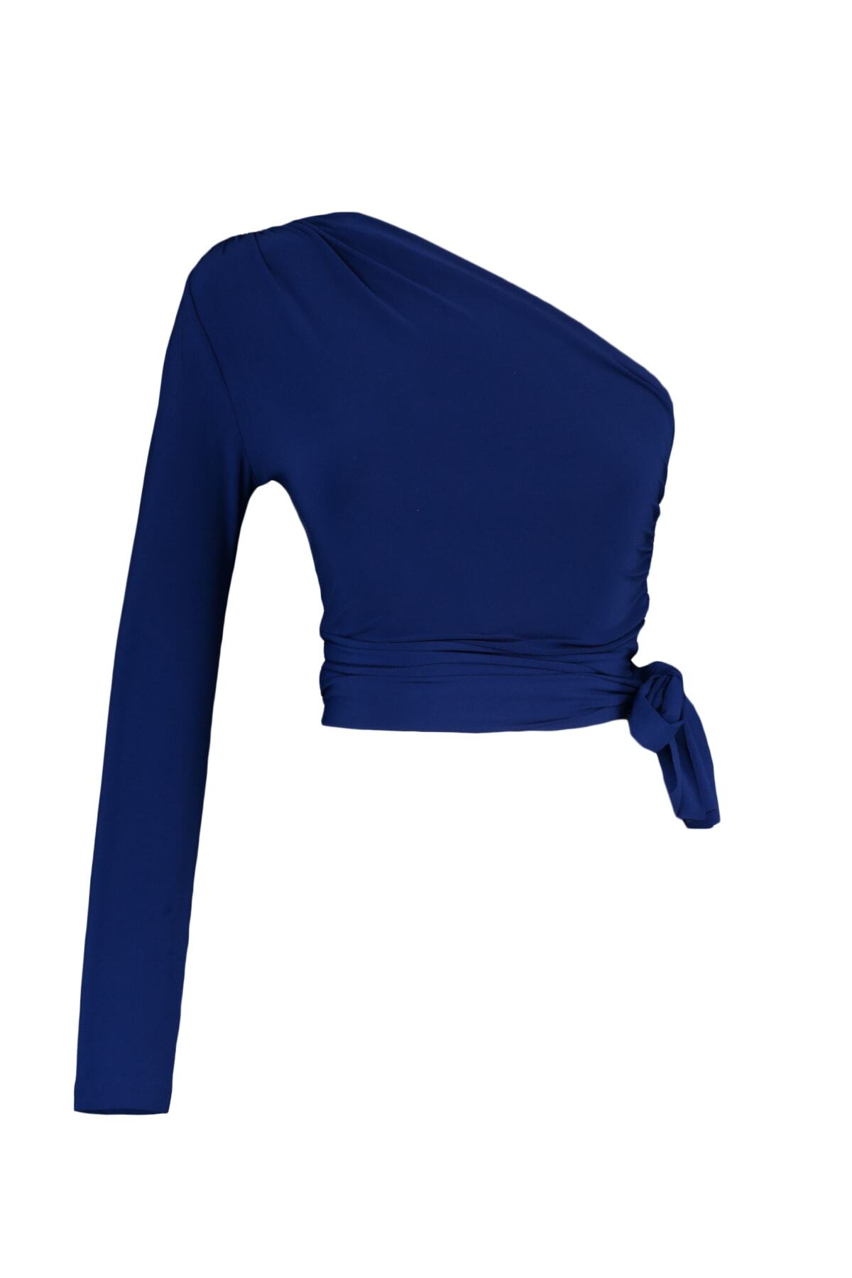 بلوز زنانه بافتنی یقه قایقی راه راه آبی دریایی TRENDYOLMILLA