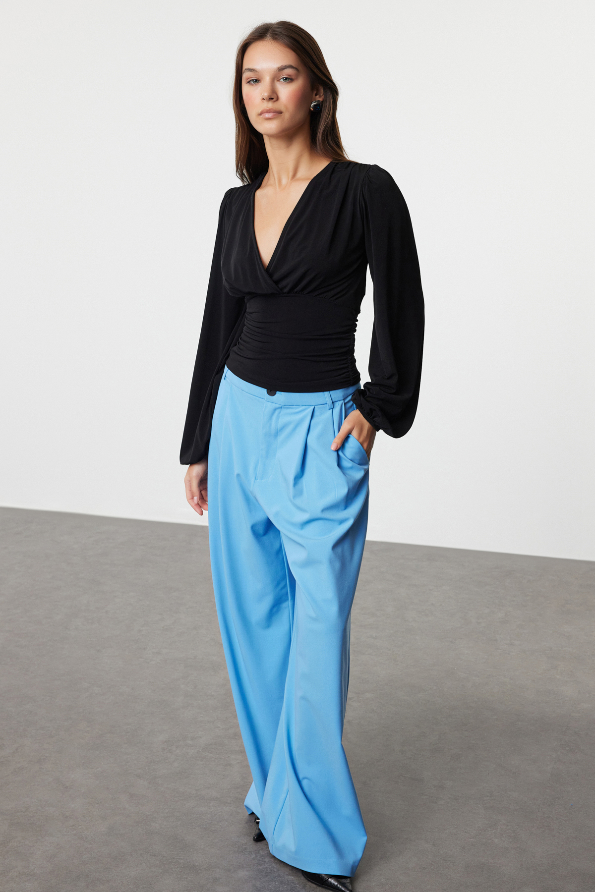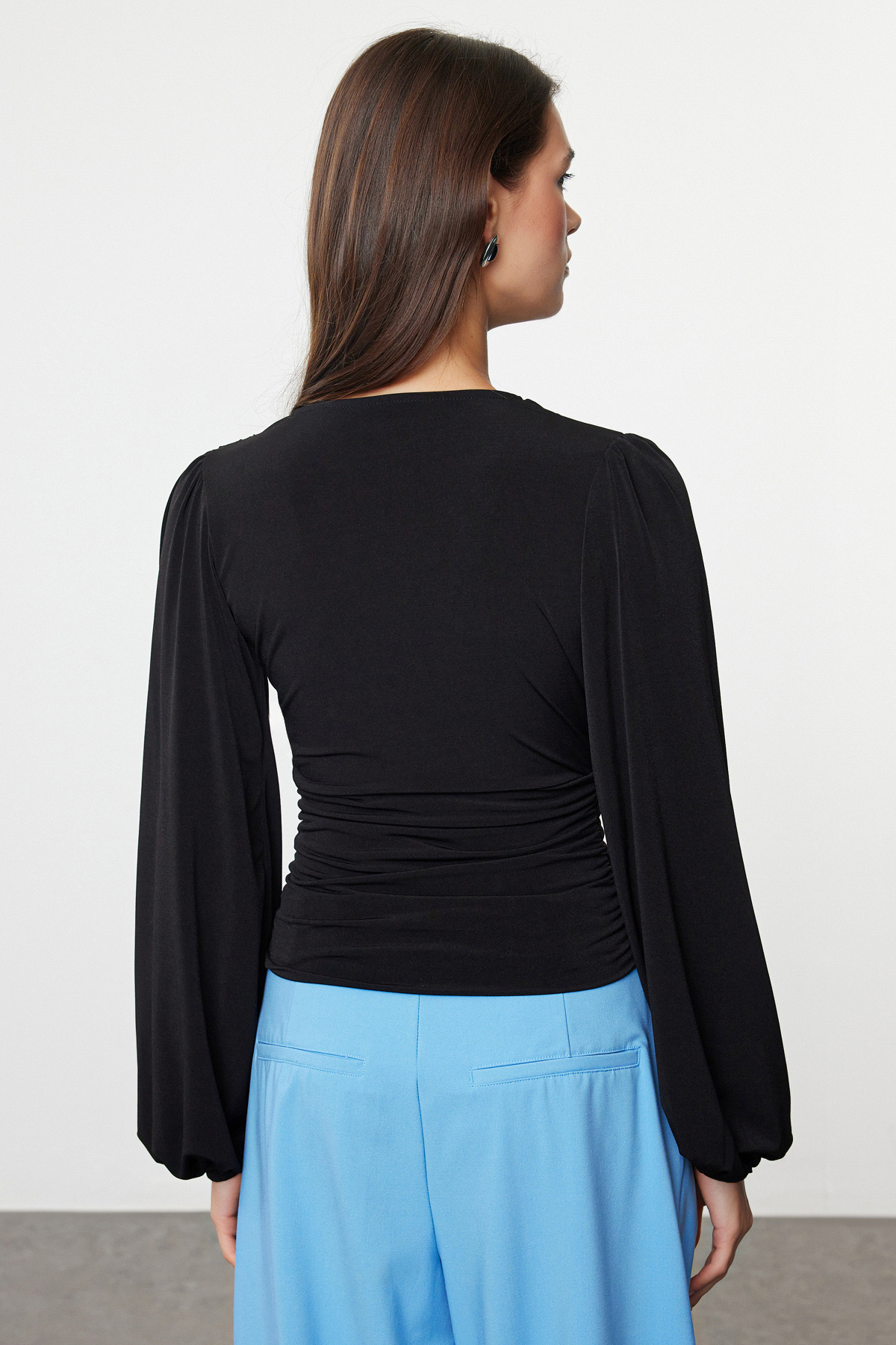 بلوز زنانه انعطاف پذیر آستین بلند دو سینه مشکی TRENDYOLMILLA