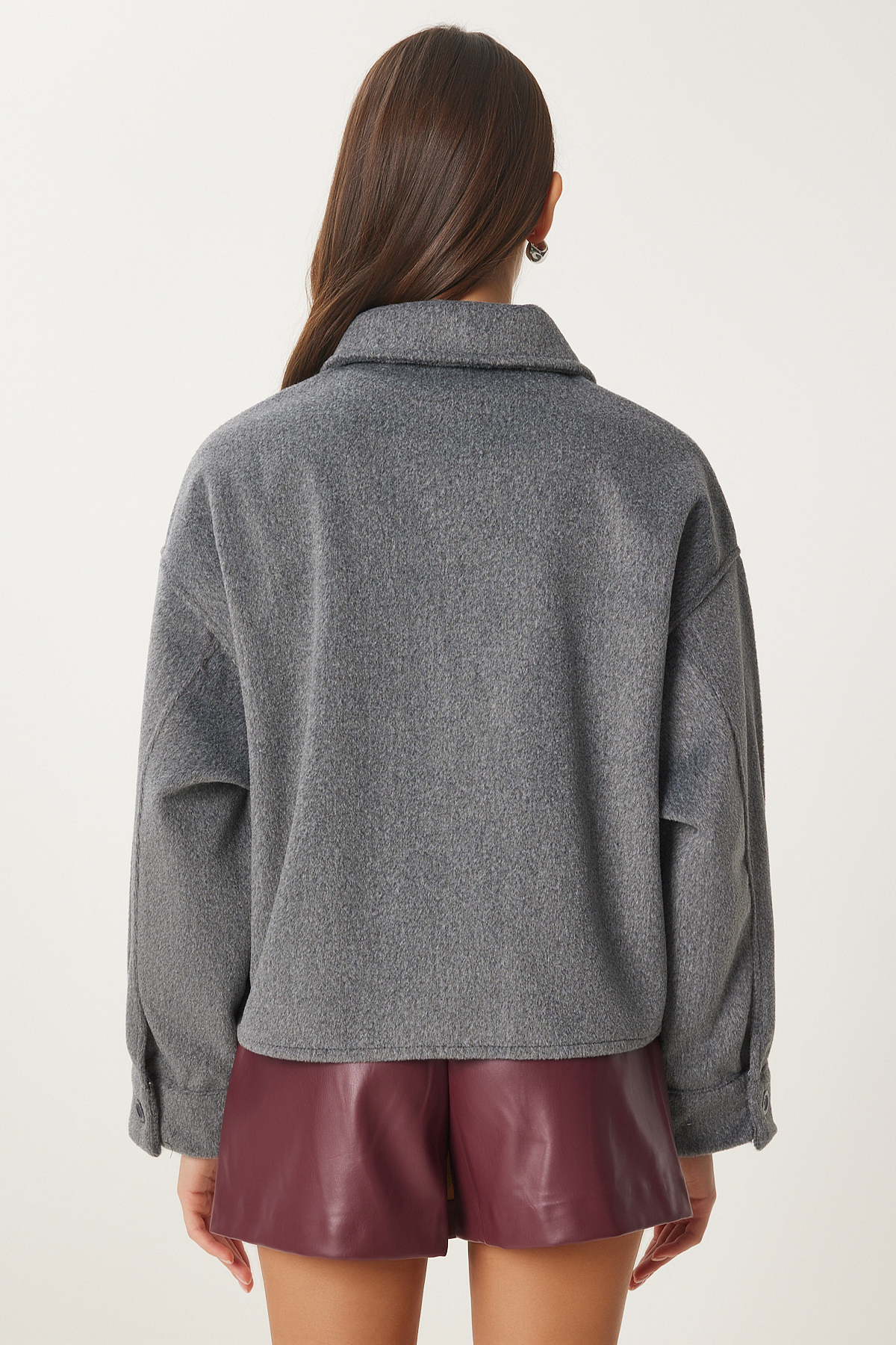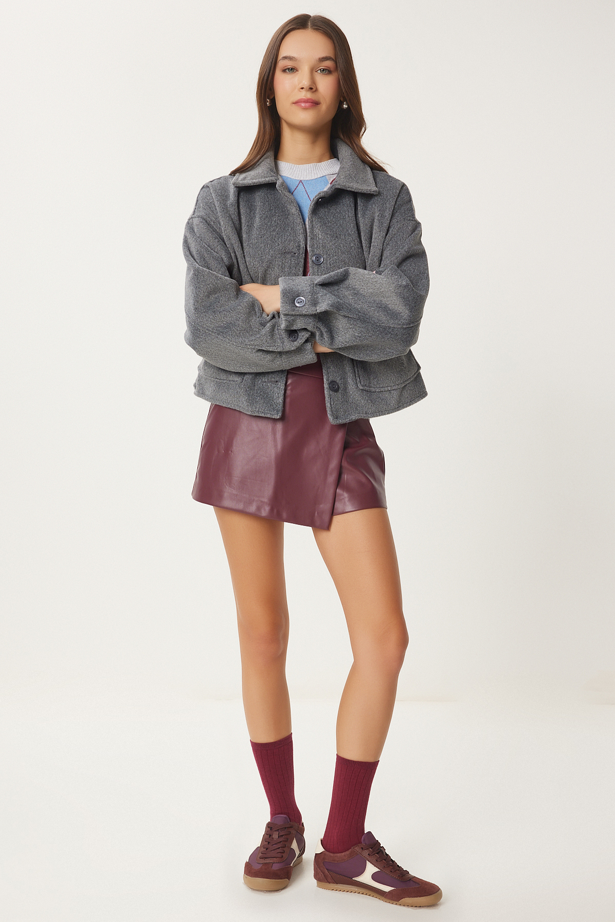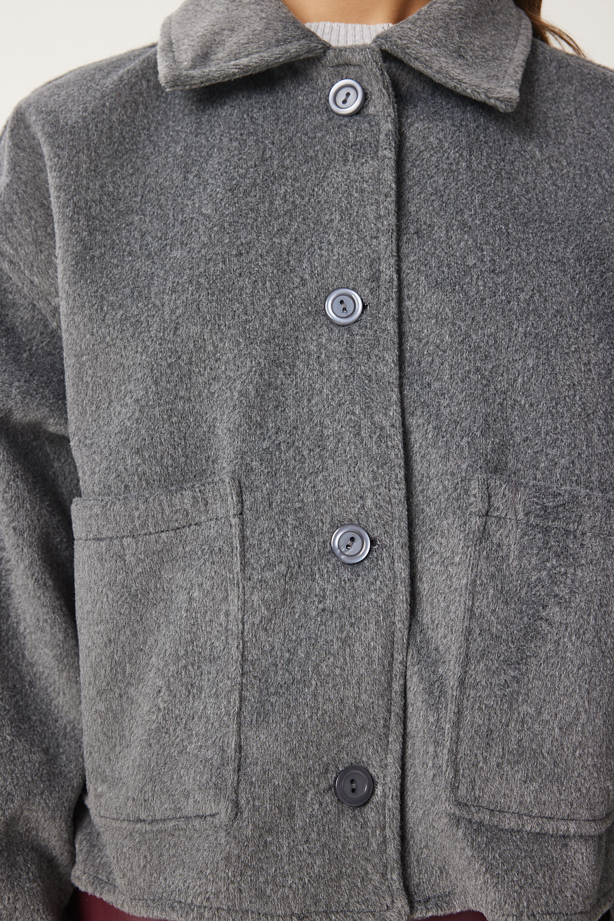 کت زنانه نرم جیب پهن ذغالی روشن Happiness Istanbul