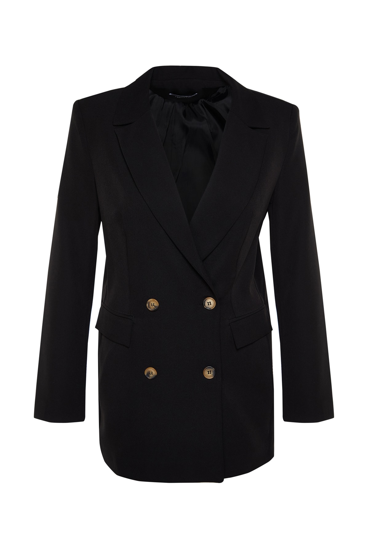 کت زنانه مشکی دکمه دار TRENDYOLMILLA
