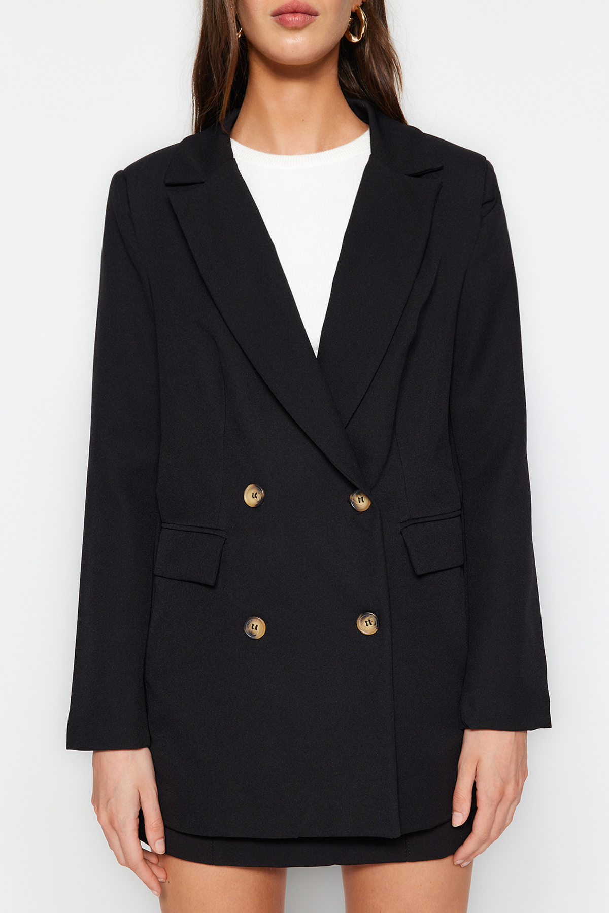 کت زنانه دو سینه مشکی با آستر TRENDYOLMILLA