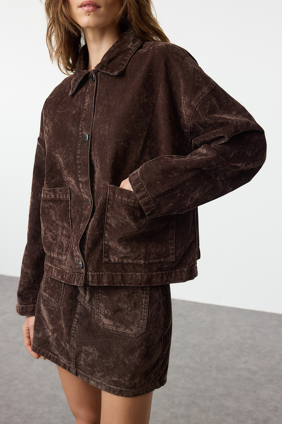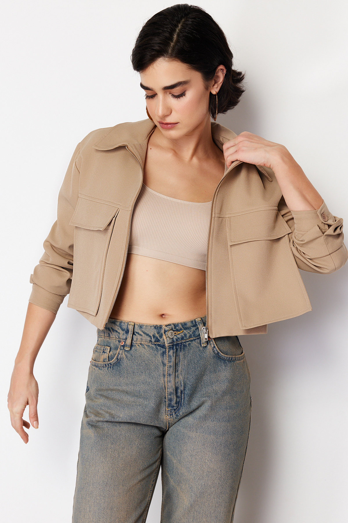 صفحه اصلی\همه کت ها\کت زنانه کراپ با جیب پوست پیازی