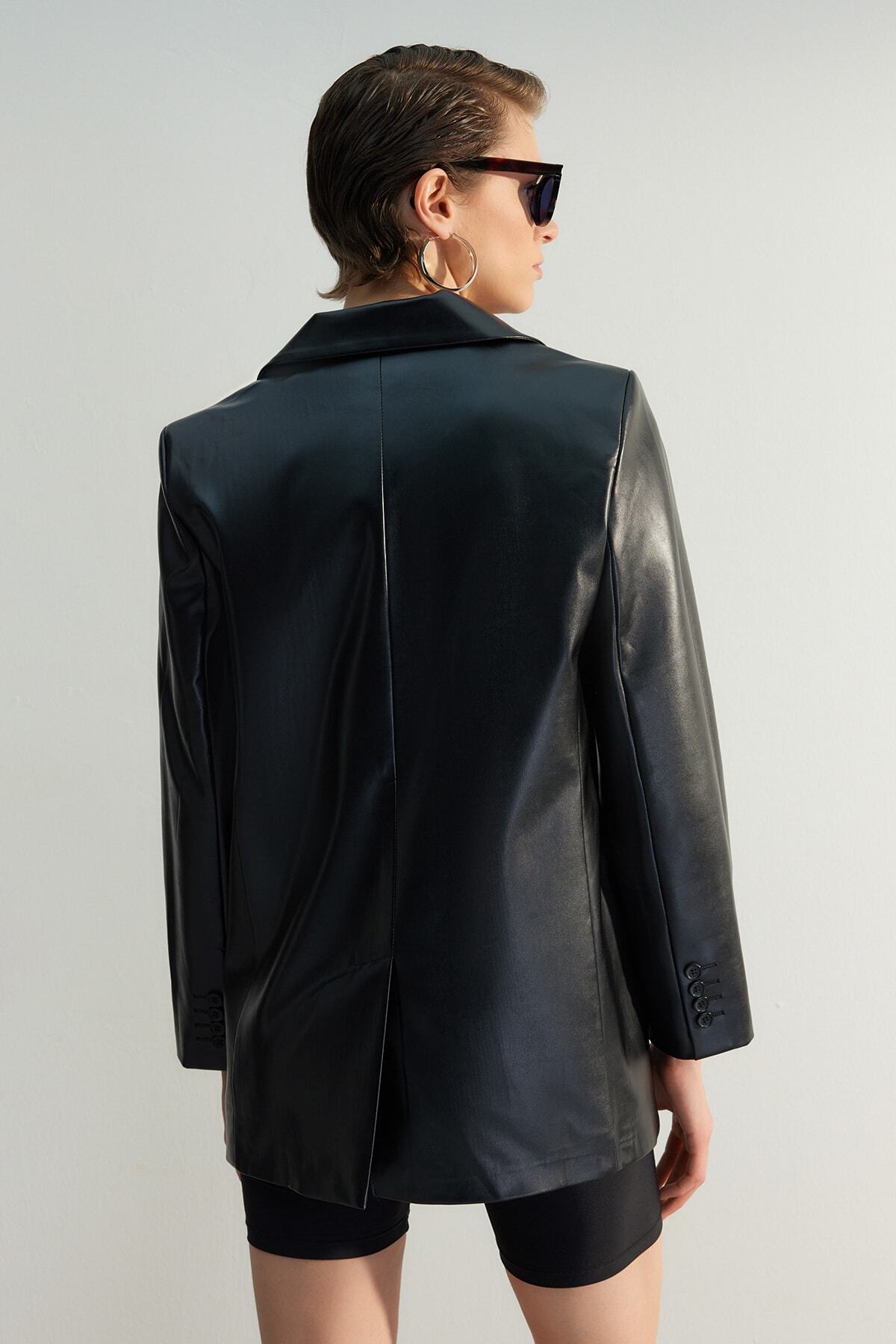 کت زنانه چرم مصنوعی اور سایز مشکی TRENDYOLMILLA