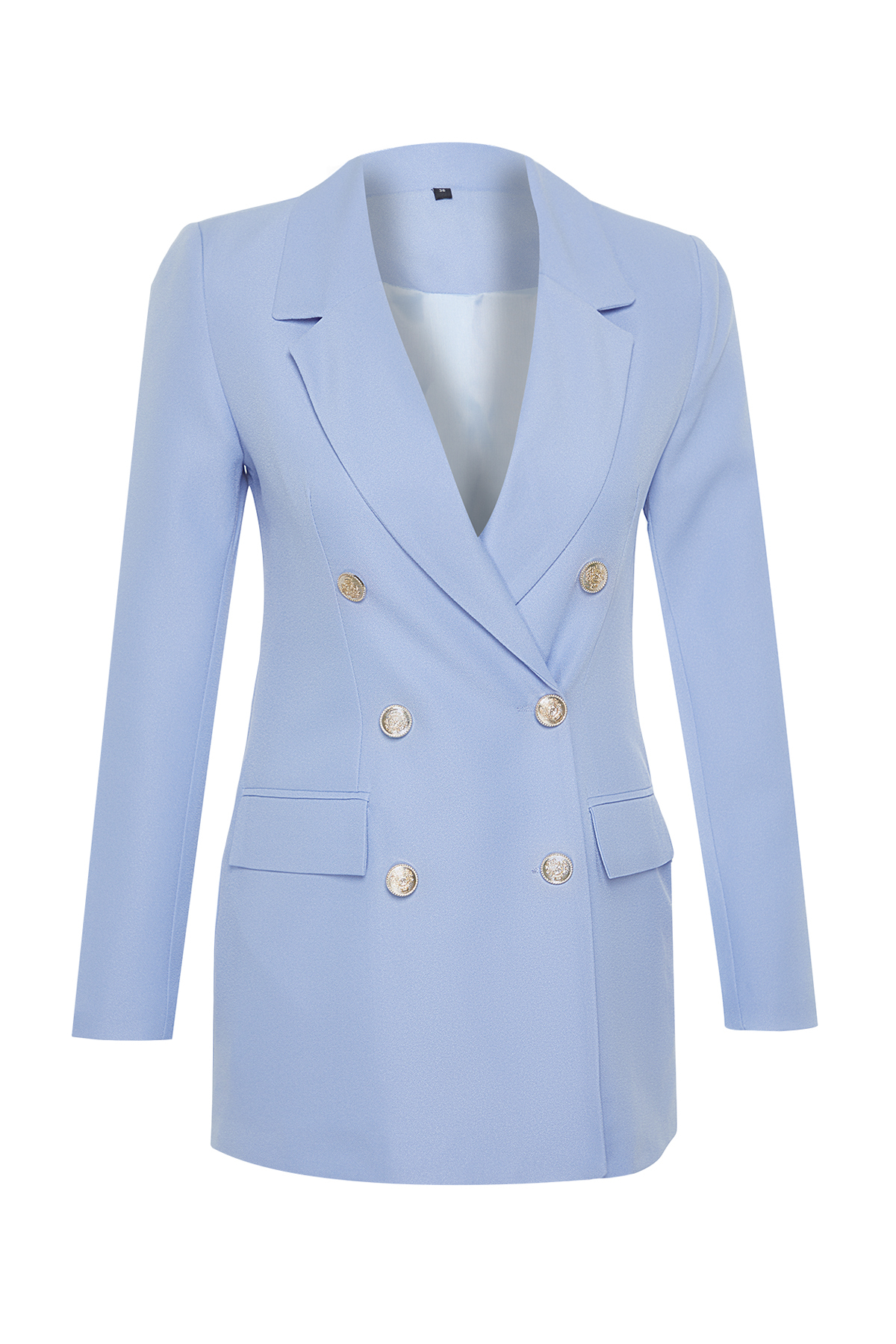 کت زنانه کتان دو سینه با آستر آبی روشن TRENDYOLMILLA