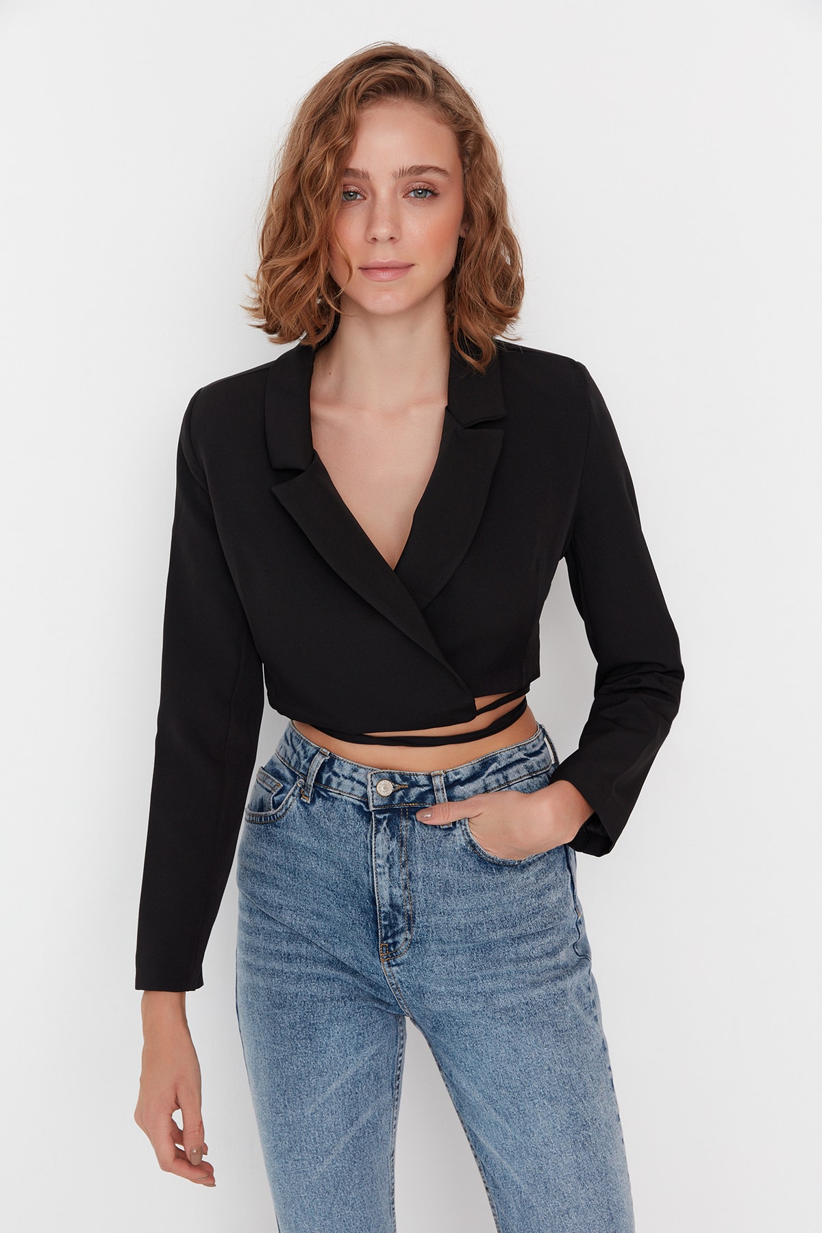 کت زنانه دو سینه با آستر کراپ مشکی TRENDYOLMILLA