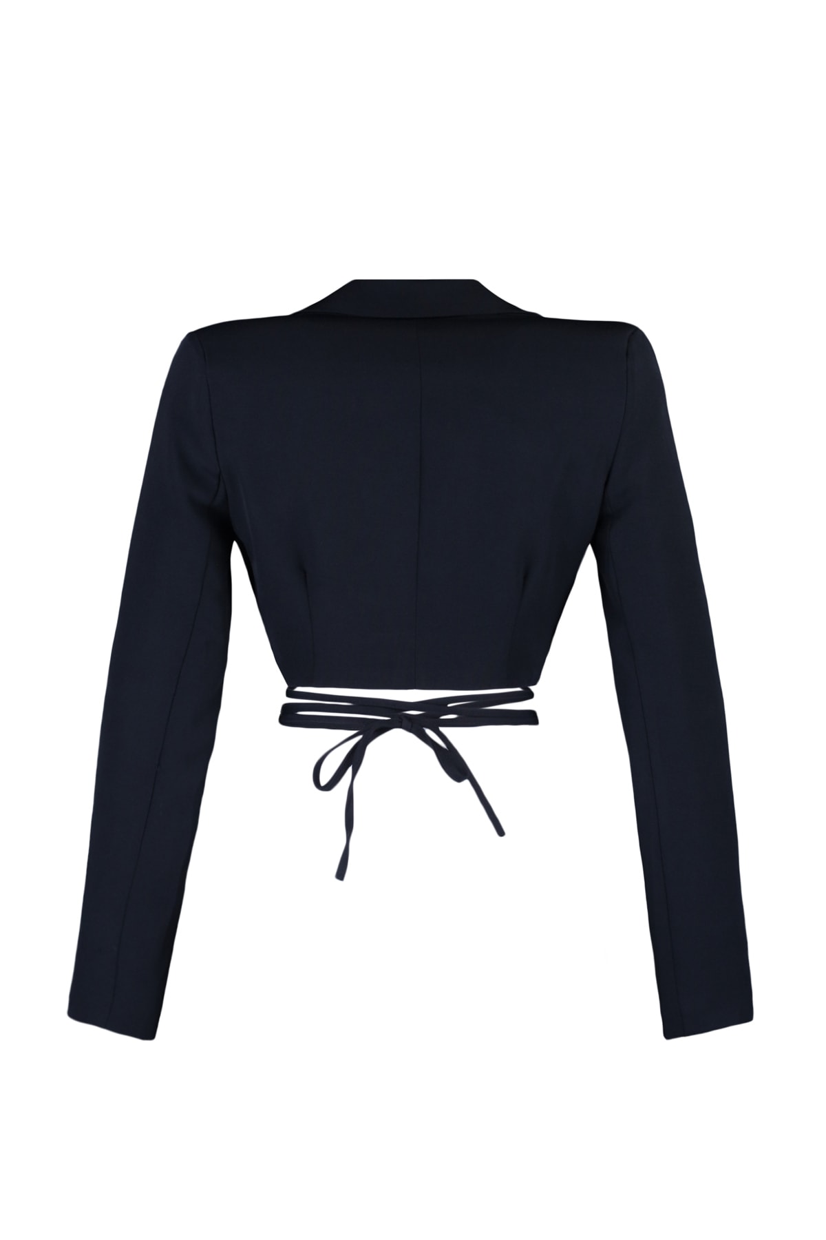 کت زنانه کراپ با کراوات آبی روشن TRENDYOLMILLA