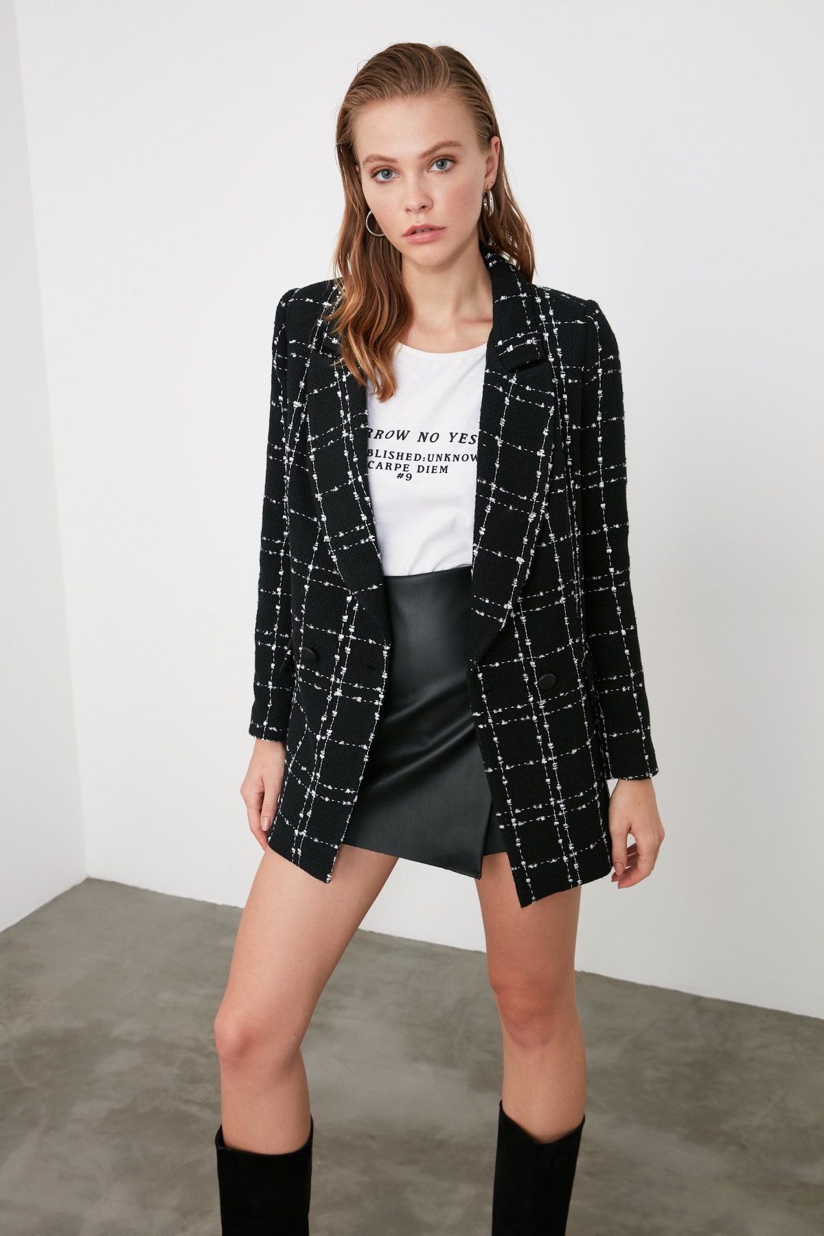 صفحه اصلی\همه کت ها\کت زنانه مشکی توید TRENDYOLMILLA