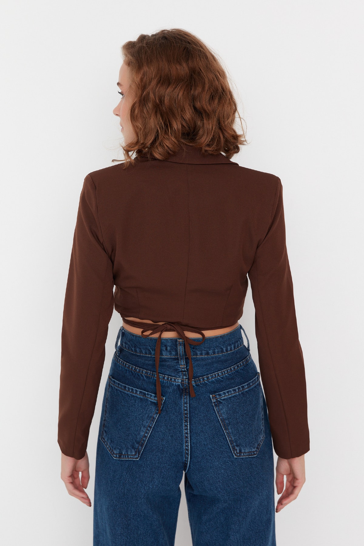 کت زنانه دو سینه با آستر قهوه ای TRENDYOLMILLA