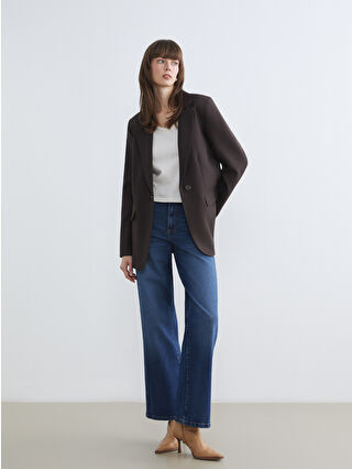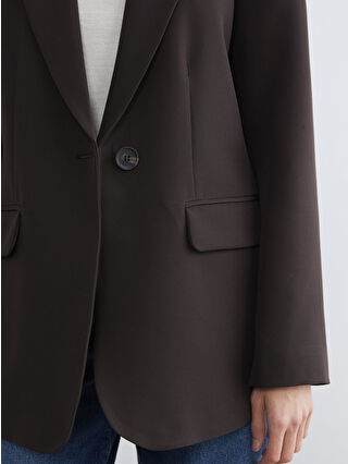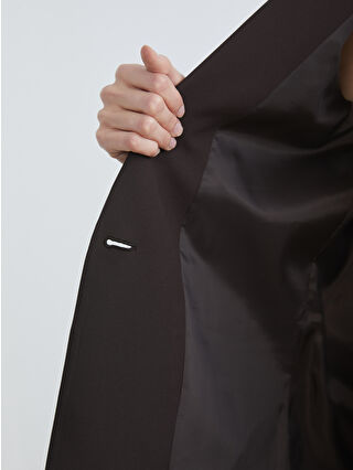 کت بلیزر زنانه کرپ قهوه ای تیره LCW