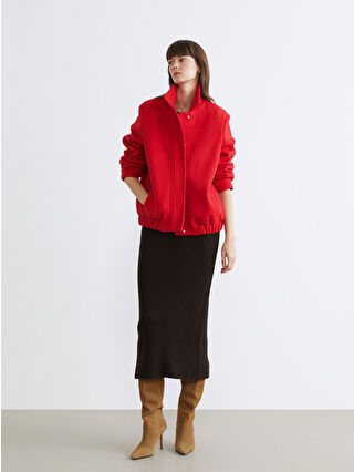 ژاکت زنانه یقه پولو مدل Bomber Bowl گوجه ای LCW