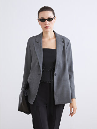 ژاکت بلیزر زنانه طرحدار خاکستری LCWAIKIKI