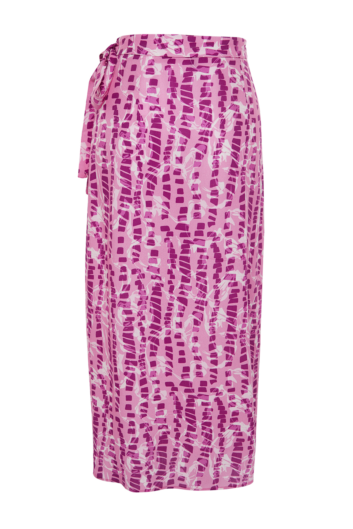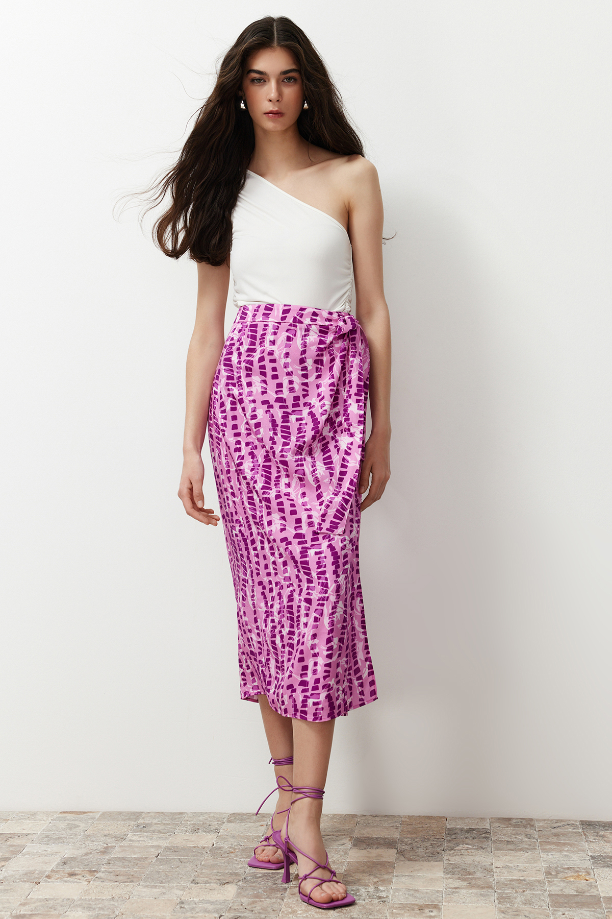 دامن زنانه میدی پارچه ویسکوز طرح دار یاسی TRENDYOLMILLA