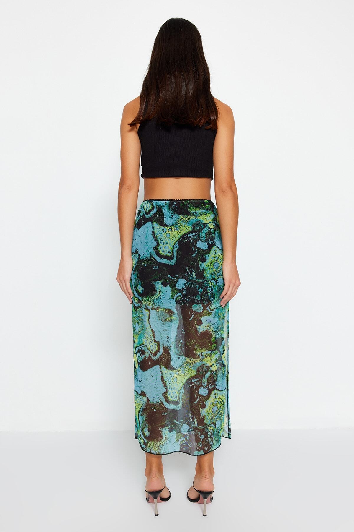 دامن زنانه ماکسی توری طرح دار آبی TRENDYOLMILLA
