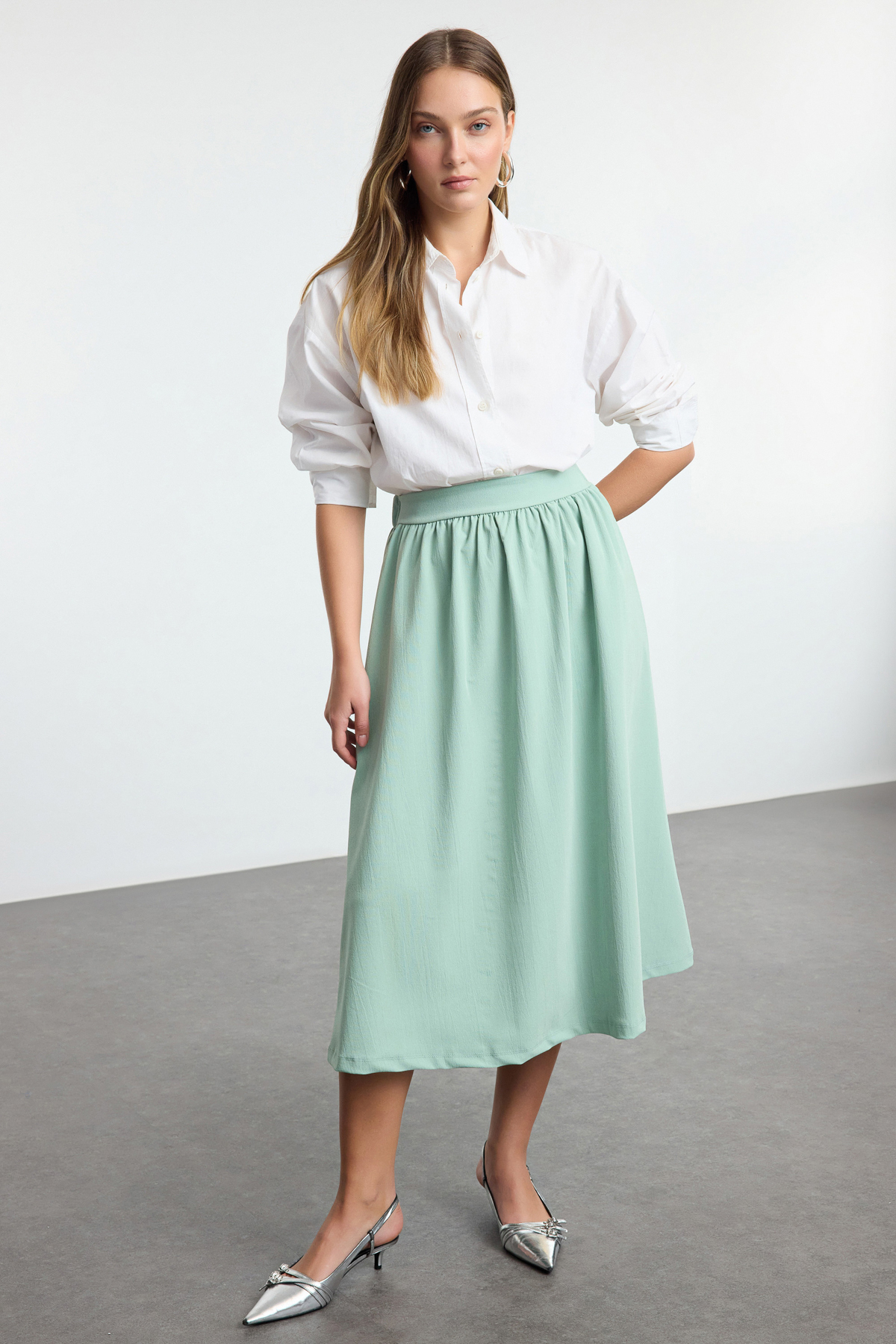 دامن زنانه کمر کشی نعنایی میدی TRENDYOLMILLA