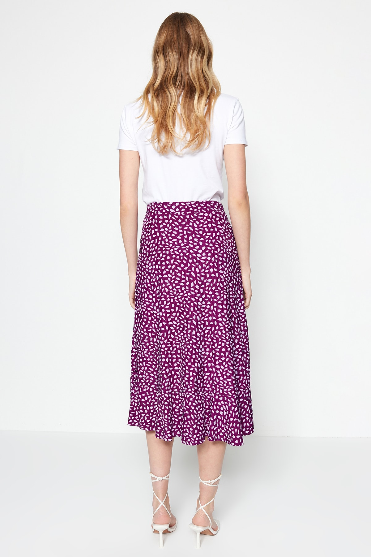 دامن زنانه بنفش میدی کمر الاستیک بلند TRENDYOLMILLA