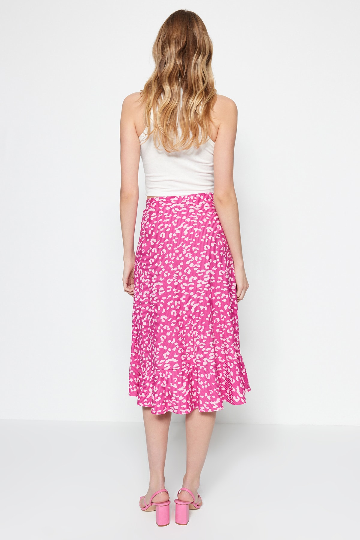 دامن زنانه میدی طرحدار زرشکی Trendyolmilla