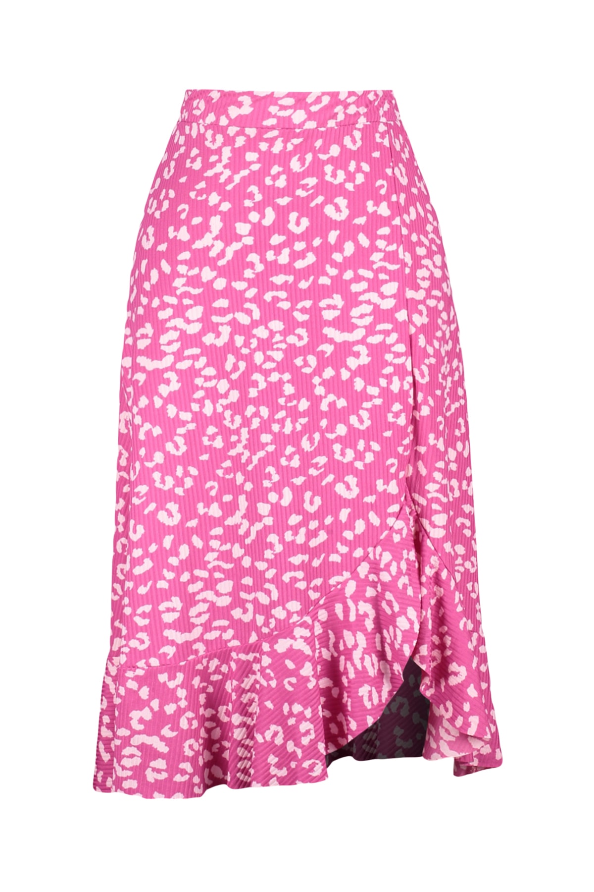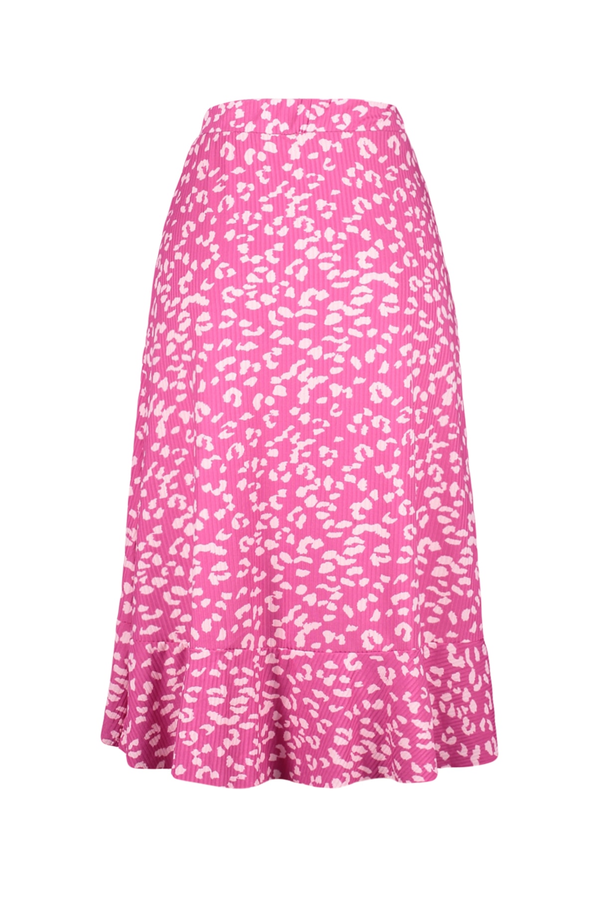 دامن قهوهای طرح پلنگی تابستانی از جنس پارچه ساتن ویسکوز با قد متوسط