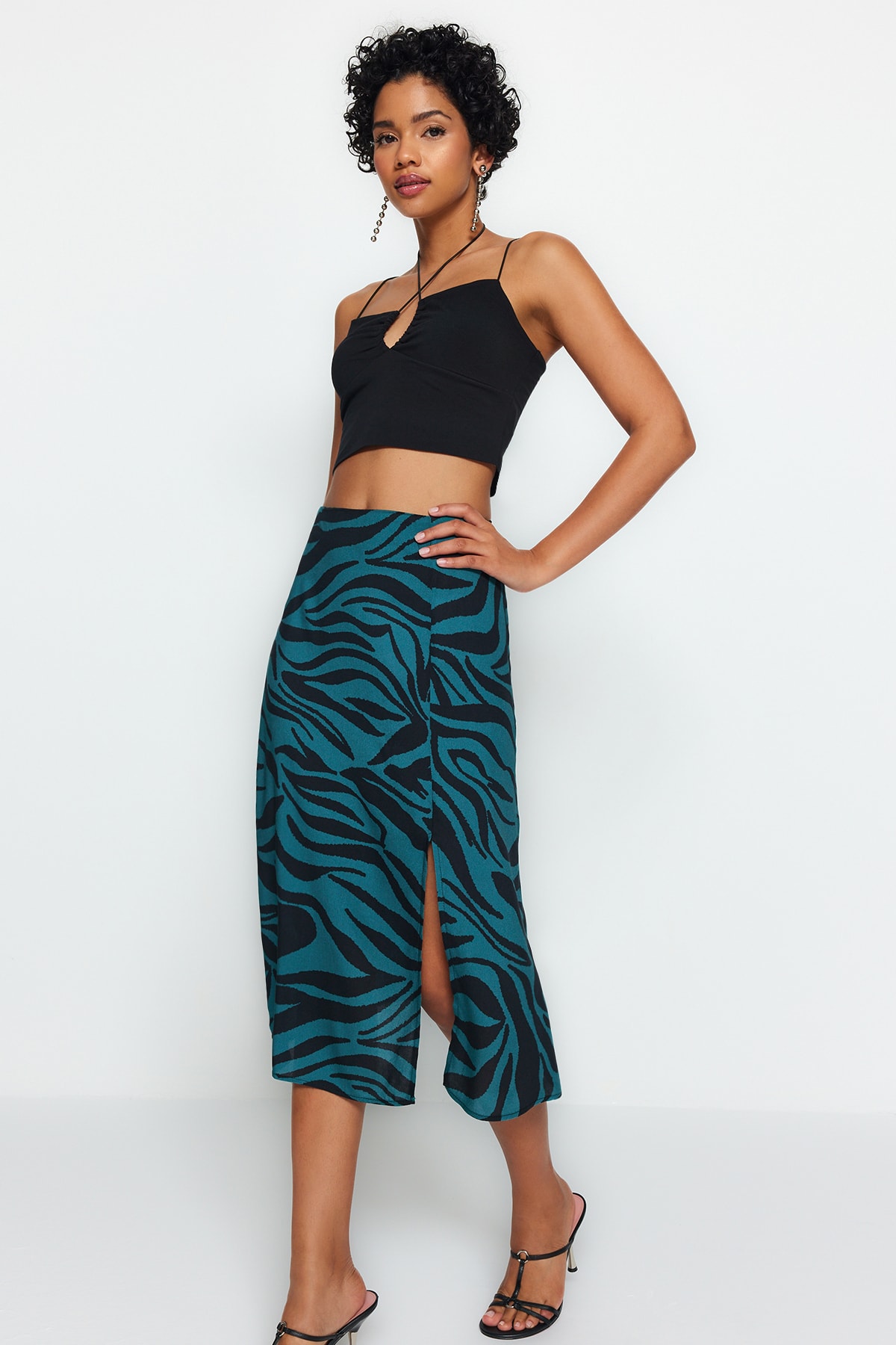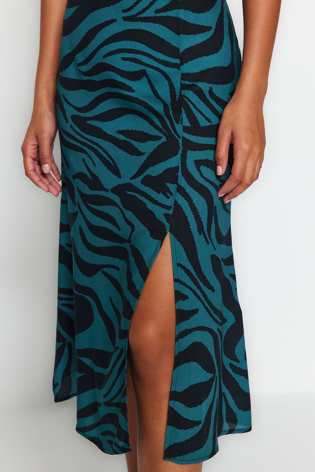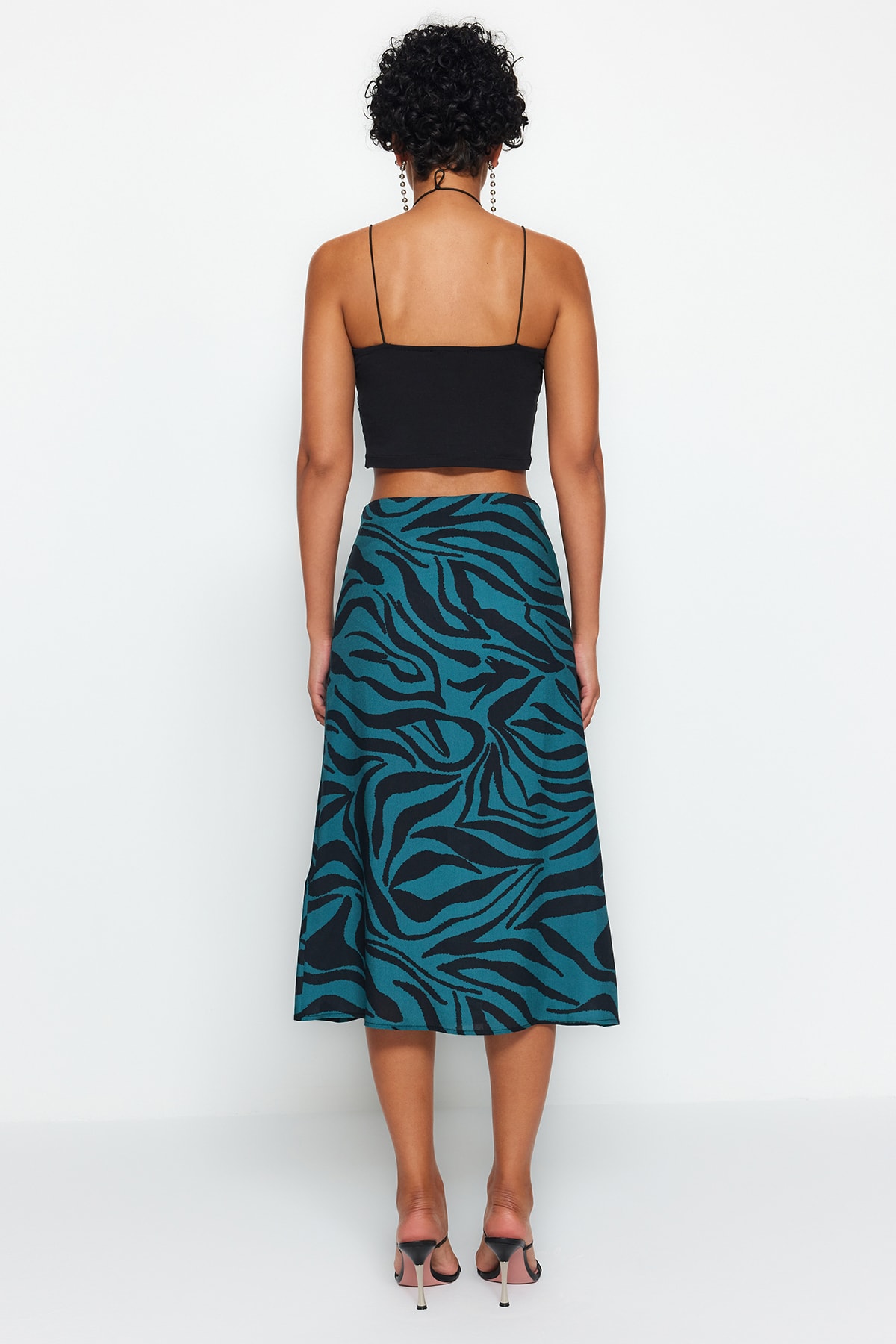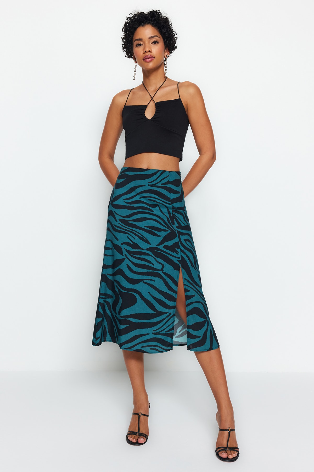 دامن زنانه میدی پارچه ویسکوز با چاک آبی نفتیTRENDYOLMILLA