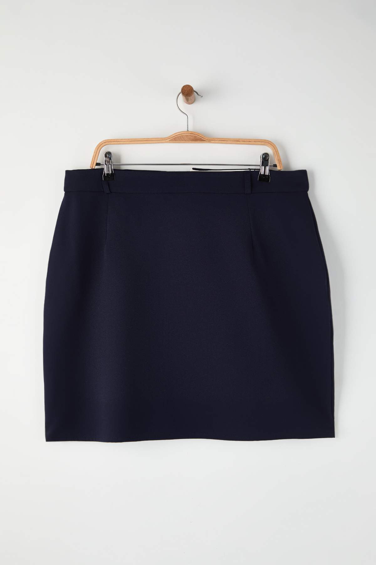 صفحه اصلی\همه دامن ها\دامن سایز بزرگ با بافت ریز و جزئیات بالا، با کمربند آبی سرمهای trendyolmilla